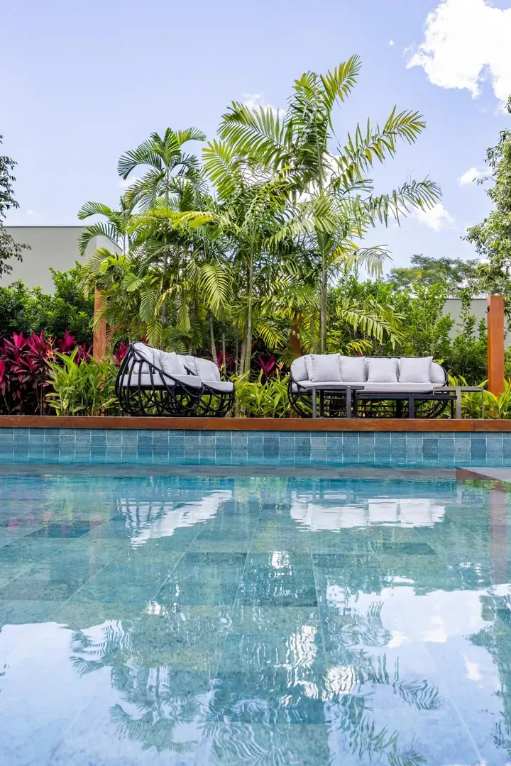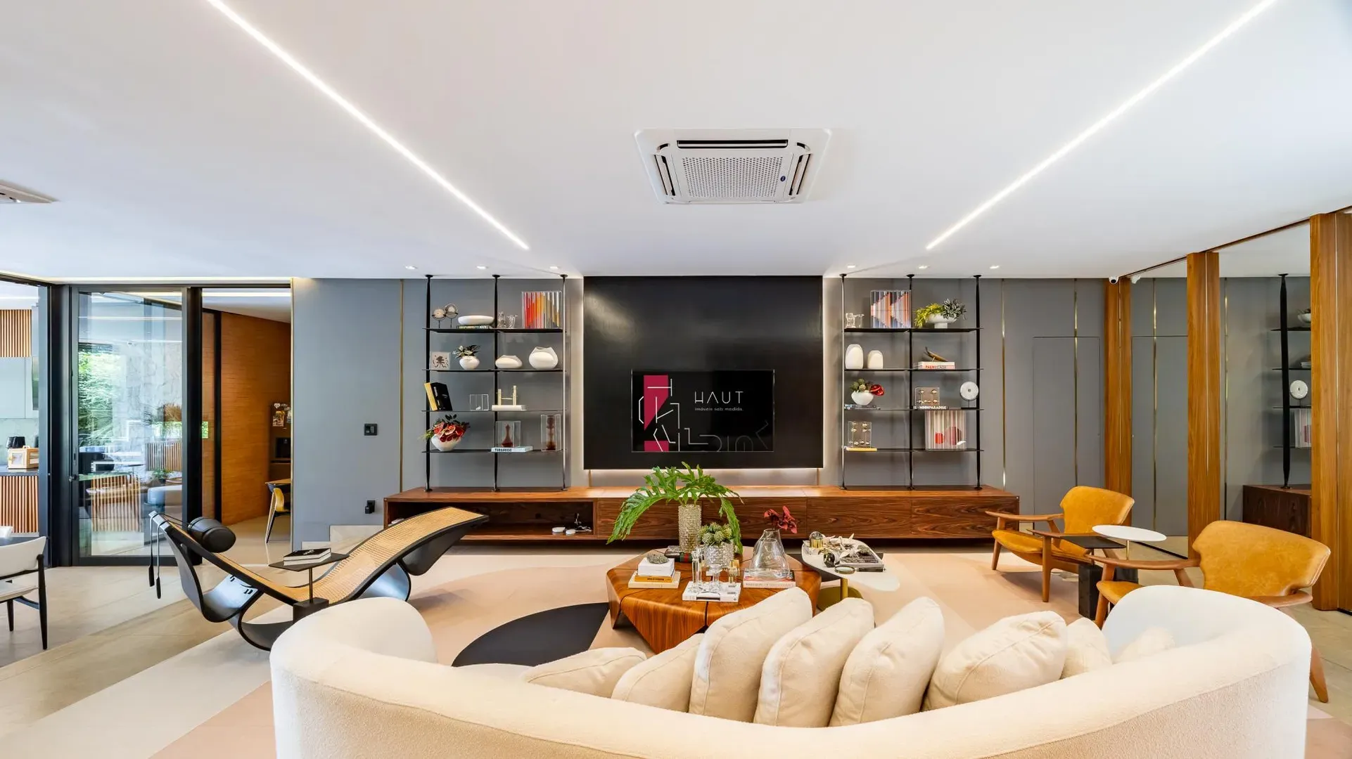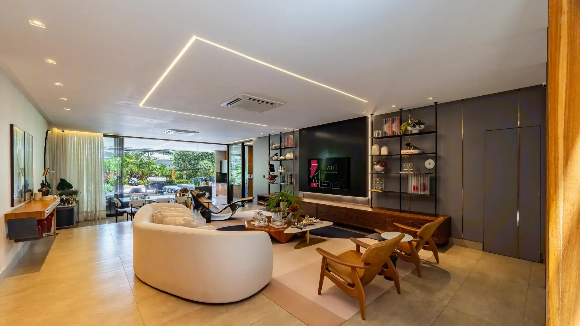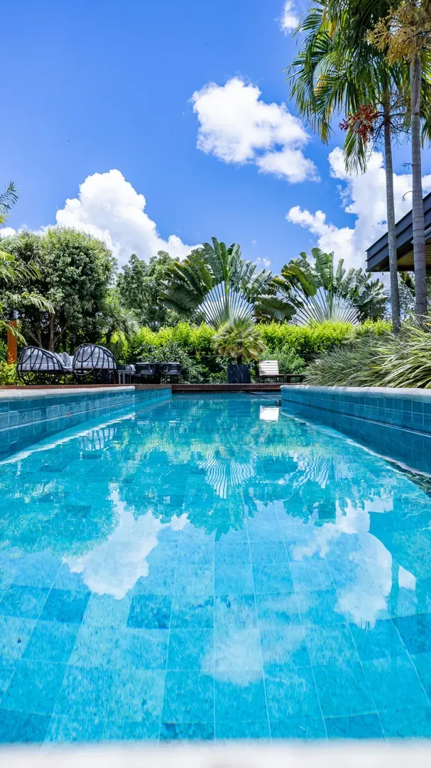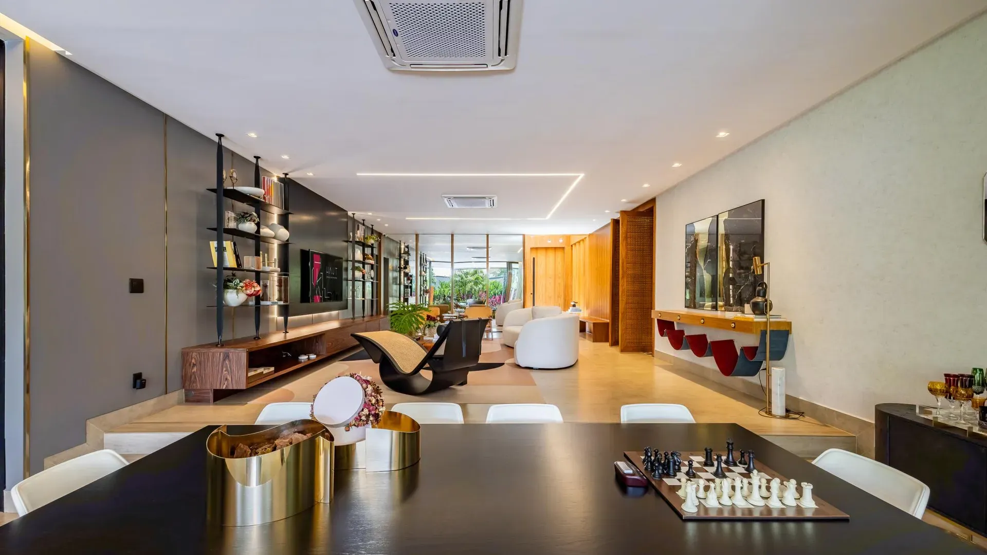 Sofisticação, conforto e integração com a natureza. Essas são as palavras que definem essa casa com 3 suítes no Aldeia do Vale. Morar no condomínio é um privilégio para poucos e com esse projeto arrojado e impecável, torna-se algo ainda mais especial. O hall de entrada já revela a imponência do projeto, com acabamentos em lâminas de madeira natural e luminárias assinadas por Jader Almeida. A sala de estar e TV, além de ampla e bem iluminada, traz peças icônicas, como as Cadeiras Diz de Sérgio Rodrigues e a Poltrona Rio de Oscar Niemeyer. Além de marcantes, formam a construção perfeita para um ambiente sofisticado e acolhedor. A fluidez segue nos outros ambientes: o lazer externo é de extremo bom gosto, com móveis de Leandro Garcia e Henrique Schreiber. Combinados com um paisagismo exuberante, tornam o espaço relaxante e repleto de personalidade. Receber a família ou amigos nessa área é proporcionar conforto ímpar, além de um visual que evoca tranquilidade e contemplação. Outro destaque é a piscina com deck de madeira, cercada por belas espreguiçadeiras. O espaço gourmet também merece menção, contando com churrasqueira, bar elegante, pergolado e projeto luminotécnico diferenciado. O Aldeia do Vale é sinônimo de privacidade e segurança para sua família. Além da exclusividade do condomínio, a localização permite um equilíbrio perfeito entre tranquilidade e conveniência, com uma variedade de comércios servindo o condomínio, de escolas a empórios, além de opções de alta gastronomia a poucos metros. Agende uma visita e conheça seu futuro lar com a Equipe HAUT. Uma negociação sob medida espera por você.