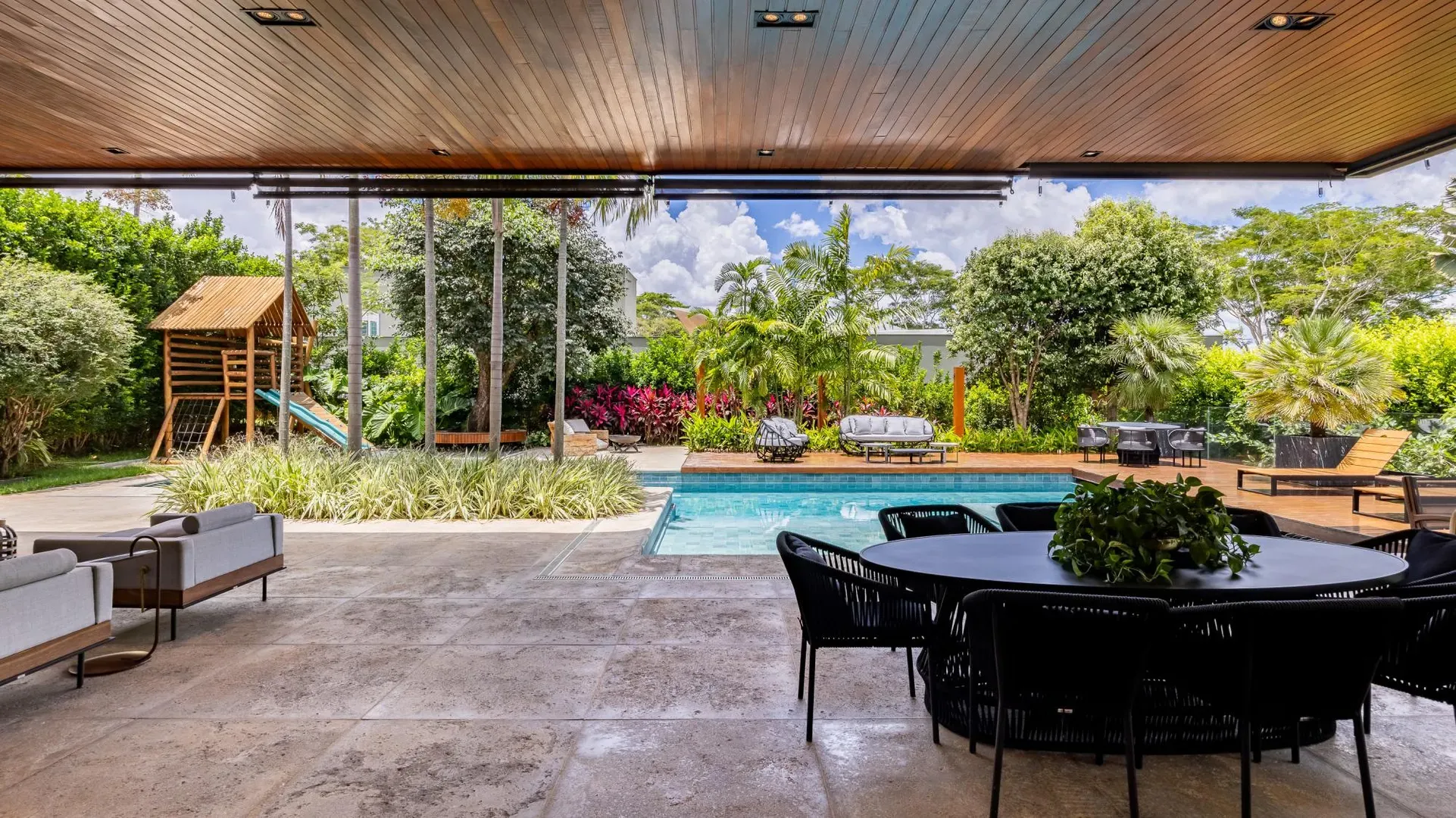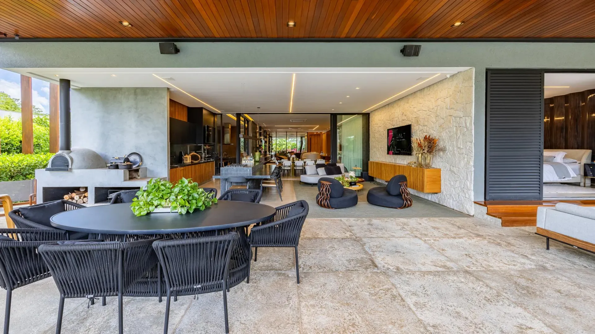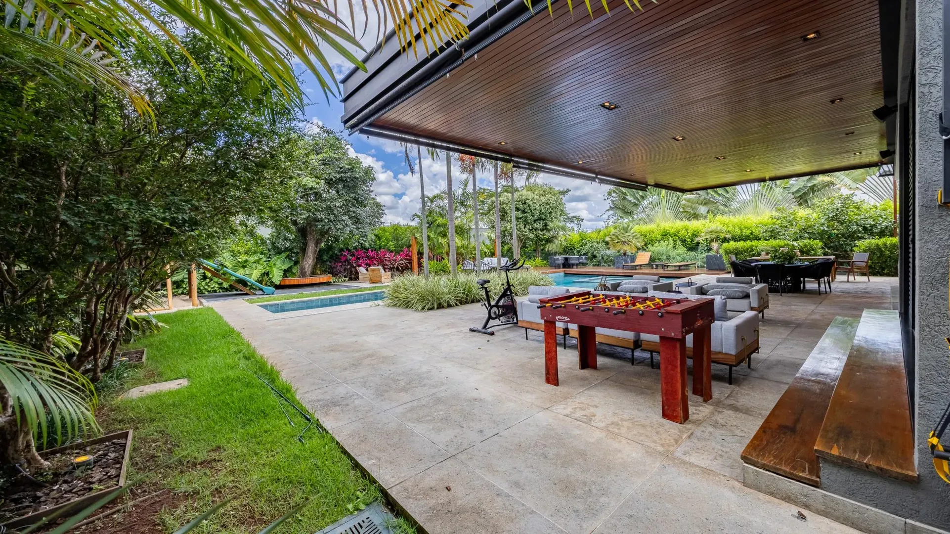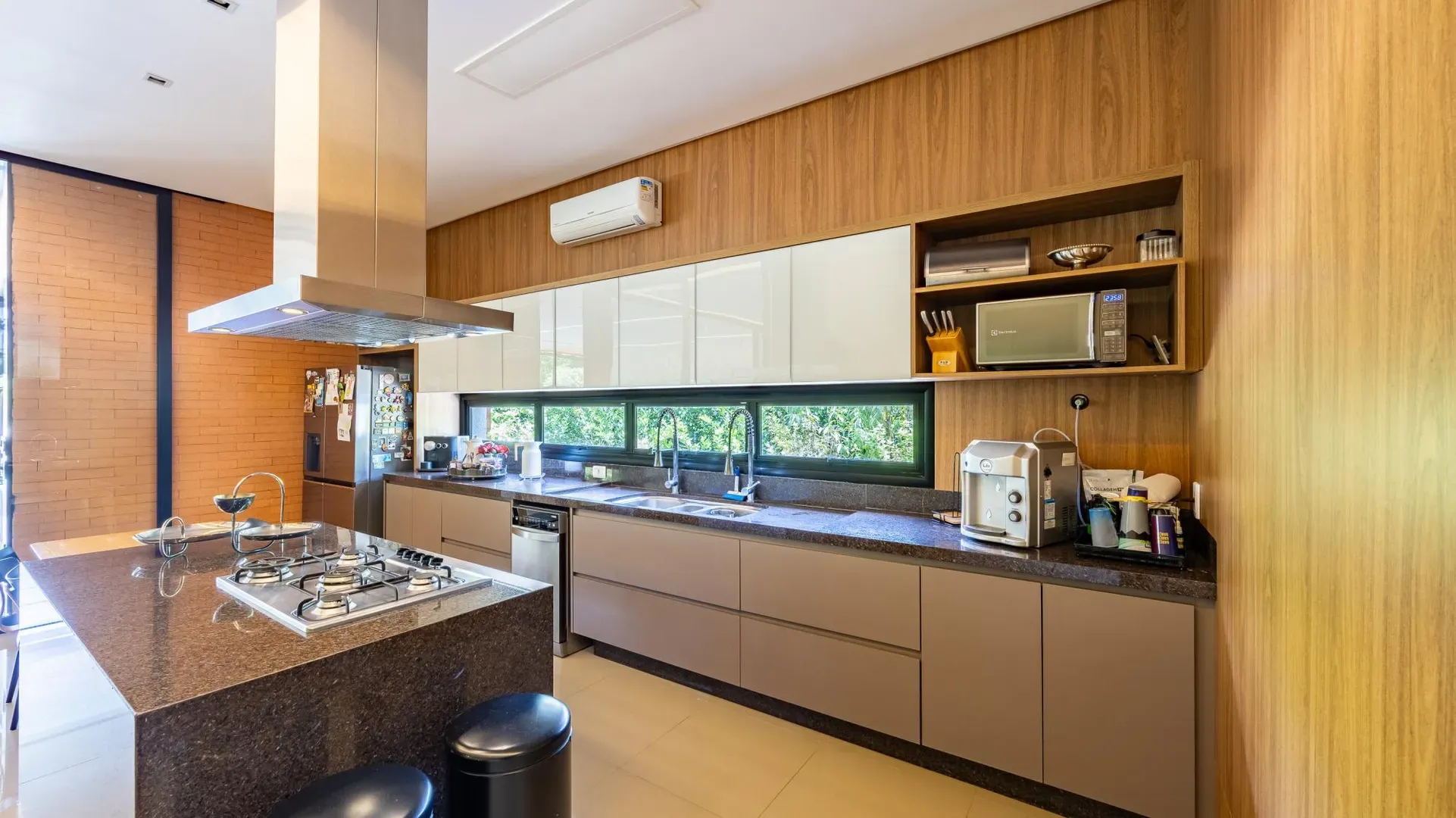 Sofisticação, conforto e integração com a natureza. Essas são as palavras que definem essa casa com 3 suítes no Aldeia do Vale. Morar no condomínio é um privilégio para poucos e com esse projeto arrojado e impecável, torna-se algo ainda mais especial. O hall de entrada já revela a imponência do projeto, com acabamentos em lâminas de madeira natural e luminárias assinadas por Jader Almeida. A sala de estar e TV, além de ampla e bem iluminada, traz peças icônicas, como as Cadeiras Diz de Sérgio Rodrigues e a Poltrona Rio de Oscar Niemeyer. Além de marcantes, formam a construção perfeita para um ambiente sofisticado e acolhedor. A fluidez segue nos outros ambientes: o lazer externo é de extremo bom gosto, com móveis de Leandro Garcia e Henrique Schreiber. Combinados com um paisagismo exuberante, tornam o espaço relaxante e repleto de personalidade. Receber a família ou amigos nessa área é proporcionar conforto ímpar, além de um visual que evoca tranquilidade e contemplação. Outro destaque é a piscina com deck de madeira, cercada por belas espreguiçadeiras. O espaço gourmet também merece menção, contando com churrasqueira, bar elegante, pergolado e projeto luminotécnico diferenciado. O Aldeia do Vale é sinônimo de privacidade e segurança para sua família. Além da exclusividade do condomínio, a localização permite um equilíbrio perfeito entre tranquilidade e conveniência, com uma variedade de comércios servindo o condomínio, de escolas a empórios, além de opções de alta gastronomia a poucos metros. Agende uma visita e conheça seu futuro lar com a Equipe HAUT. Uma negociação sob medida espera por você.