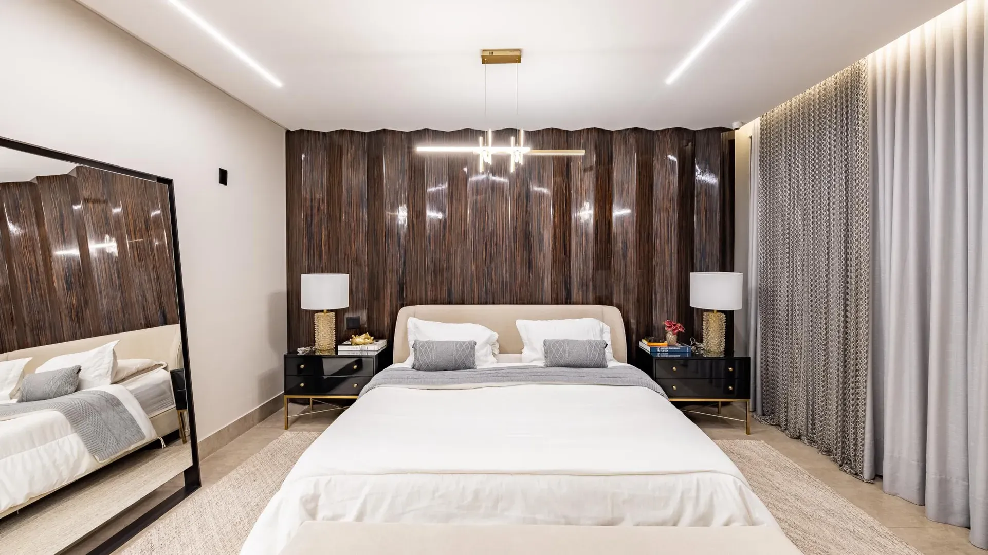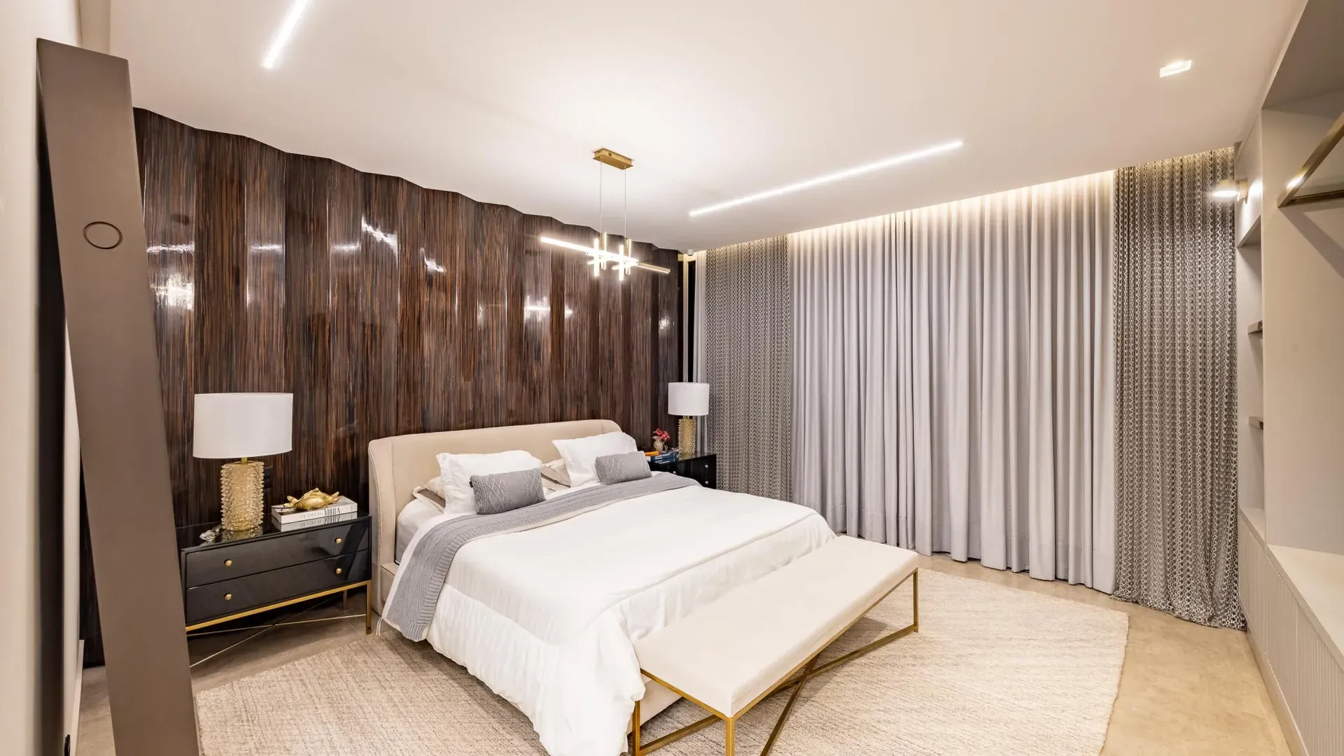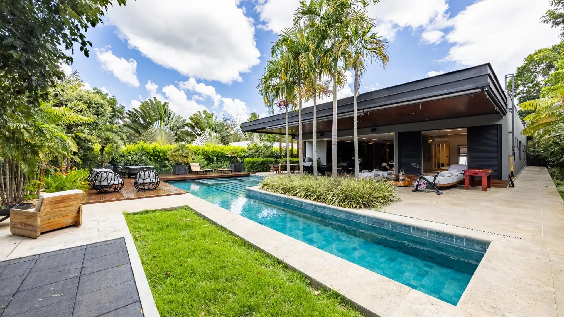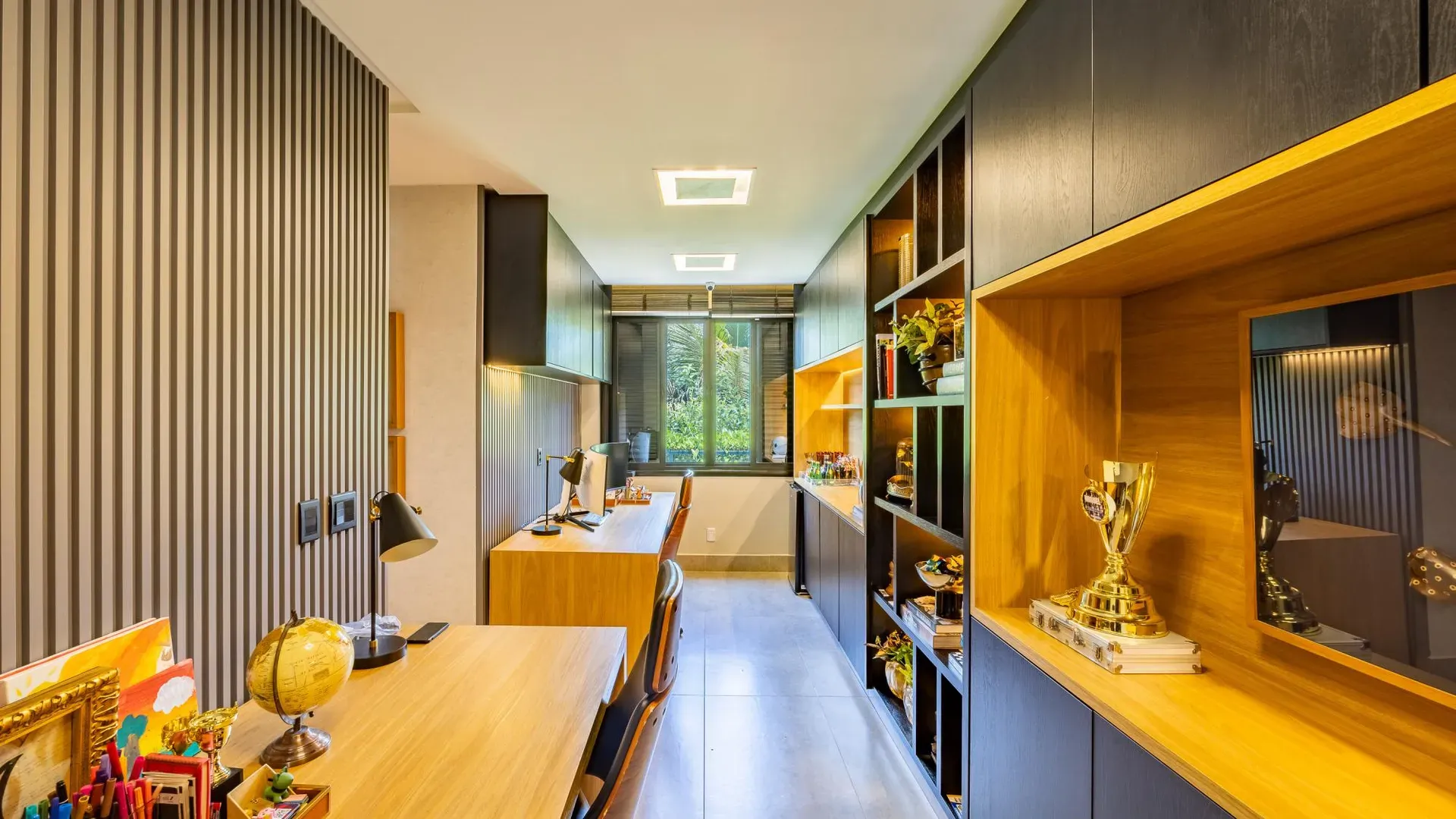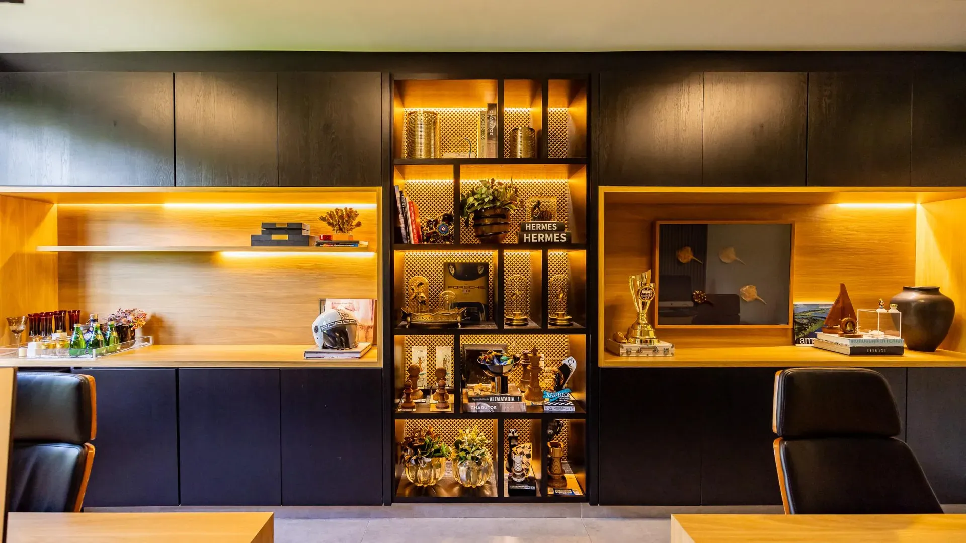 Sofisticação, conforto e integração com a natureza. Essas são as palavras que definem essa casa com 3 suítes no Aldeia do Vale. Morar no condomínio é um privilégio para poucos e com esse projeto arrojado e impecável, torna-se algo ainda mais especial. O hall de entrada já revela a imponência do projeto, com acabamentos em lâminas de madeira natural e luminárias assinadas por Jader Almeida. A sala de estar e TV, além de ampla e bem iluminada, traz peças icônicas, como as Cadeiras Diz de Sérgio Rodrigues e a Poltrona Rio de Oscar Niemeyer. Além de marcantes, formam a construção perfeita para um ambiente sofisticado e acolhedor. A fluidez segue nos outros ambientes: o lazer externo é de extremo bom gosto, com móveis de Leandro Garcia e Henrique Schreiber. Combinados com um paisagismo exuberante, tornam o espaço relaxante e repleto de personalidade. Receber a família ou amigos nessa área é proporcionar conforto ímpar, além de um visual que evoca tranquilidade e contemplação. Outro destaque é a piscina com deck de madeira, cercada por belas espreguiçadeiras. O espaço gourmet também merece menção, contando com churrasqueira, bar elegante, pergolado e projeto luminotécnico diferenciado. O Aldeia do Vale é sinônimo de privacidade e segurança para sua família. Além da exclusividade do condomínio, a localização permite um equilíbrio perfeito entre tranquilidade e conveniência, com uma variedade de comércios servindo o condomínio, de escolas a empórios, além de opções de alta gastronomia a poucos metros. Agende uma visita e conheça seu futuro lar com a Equipe HAUT. Uma negociação sob medida espera por você.