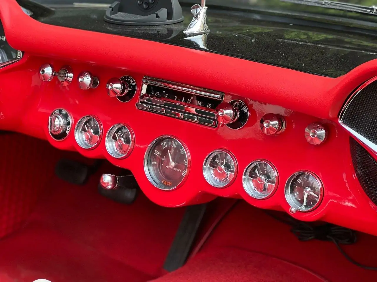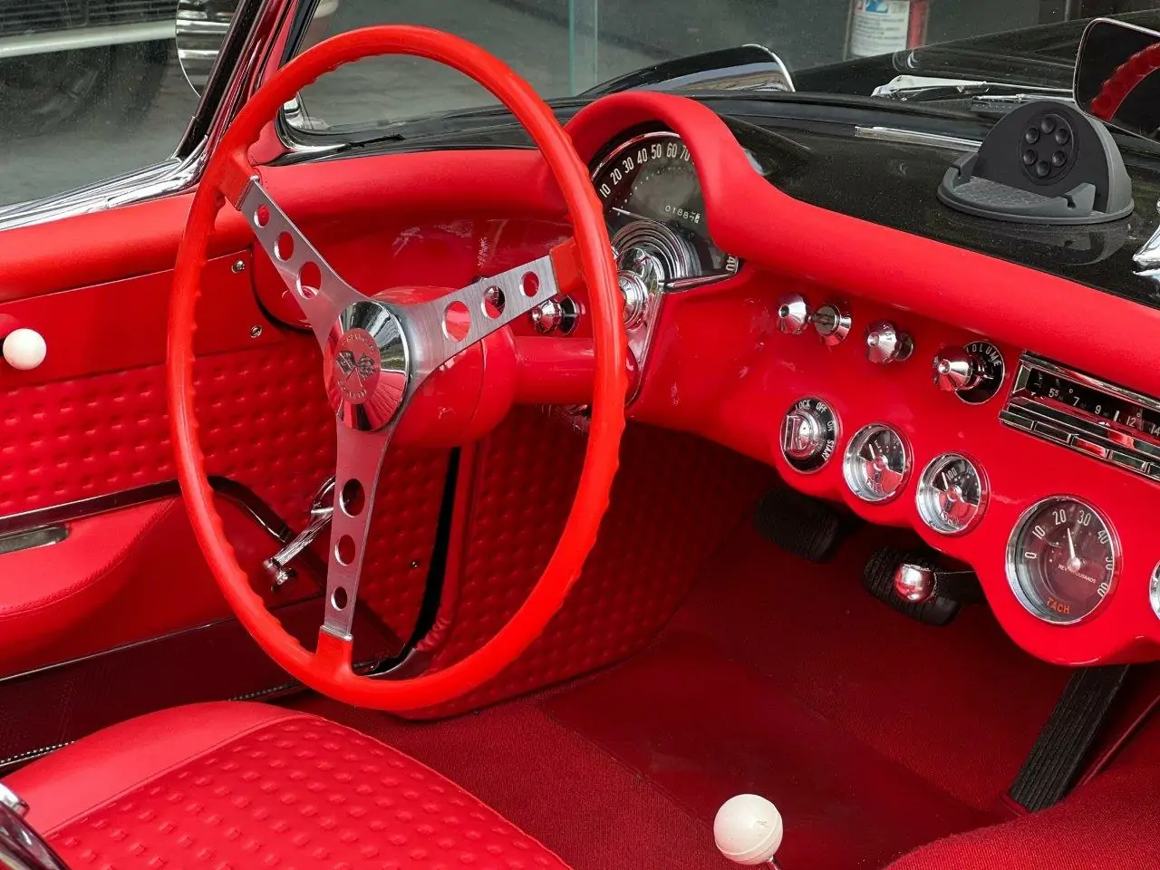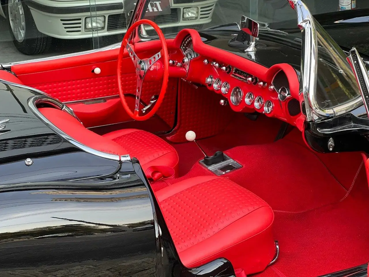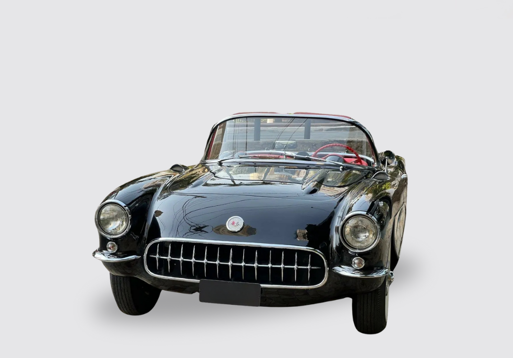 Criado em 1953, foi o primeiro carro esporte inteiramente americano fabricado por uma empresa americana. Apresentado em New York no dia 17 de janeiro de 1953, surpreendeu o público, era um carro diferente dos padrões americanos, pequeno, baixo, com visual limpo e esportivo. Equipada no início com motor 6 cilindros em linha com 235 polegadas cúbicas e 3.8 litros, possuía 150 HP. Em 1955 a GM preocupada com os baixos números de venda e baixo desempenho, fez mudanças lançando um motor V8 de 265 polegadas de 4.3 litros e 195 HP que alcançava 200 Km/h. Assim entrou na concorrência do recém lançado Ford Thunderbird com V8 de 4.5 litros. Nosso Corvette V8 foi todo restaurado e está em excepcional estado geral.