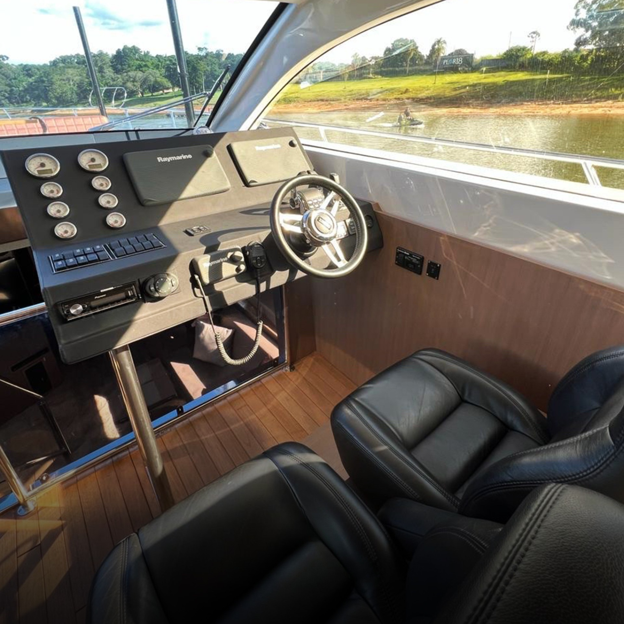 Antena TV, Ar Condicionado, Boiler, Bússola, Carregador de Baterias, Carreta, Churrasqueira, Chuveiro de Popa, Cristaleira, Comando Eletrônico, Direção Hidráulica, DVD, Faróis, Farol Robotizado, Flaps Hidráulicos, Fogão Elétrico, Freezer, Geladeira, Geleira, Gerador, Gerador KVA: ONAN , GPS, GPS Fly, Guincho Elétrico, Icemaker, Iluminação Subaquática, Joystick, Plataforma Submergível, Microondas, Piloto Automático, Radar, Rádio VHF, Rádio VHF Fly, Solário de Popa, Solário de Proa, Som, Sonda, Strobolight, Teka Patamar de Popa, Teka Praça de Popa, Teka Cockpit, Teka Passadiço, Teka Proa, Televisão, Tomada de Cais, WC Elétrico, Defensa, Quartos: 3, Banheiros: 3