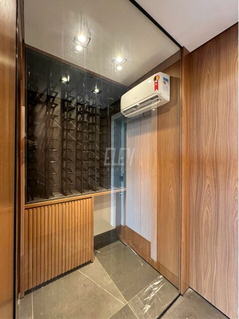 • Adega climatizada, para os apreciadores de vinhos, com espaço para armazenar suas melhores garrafas.