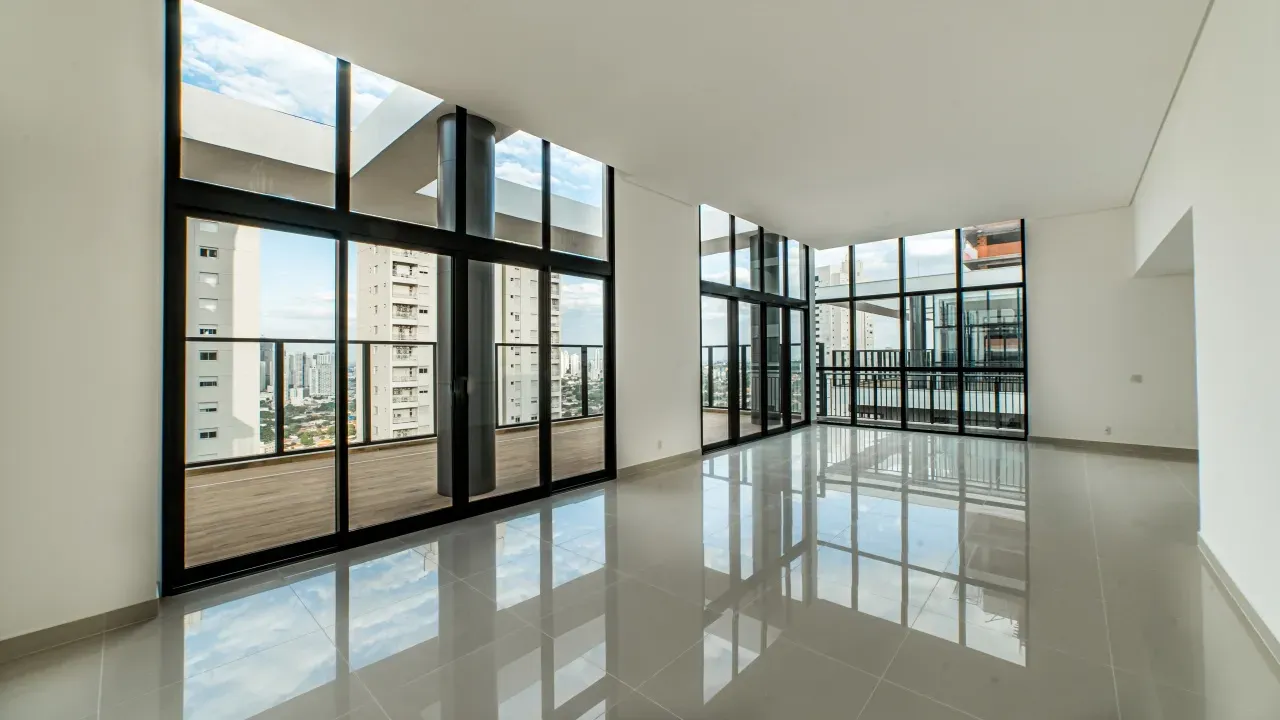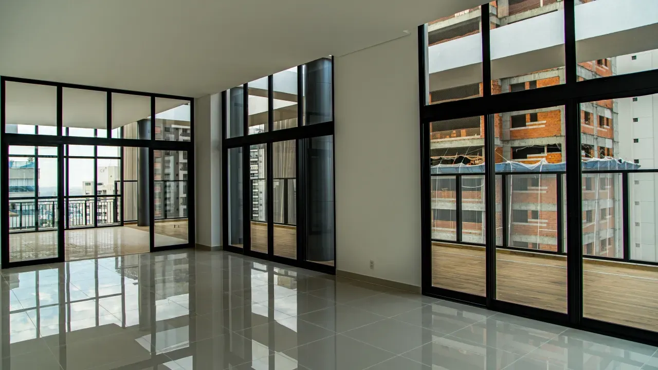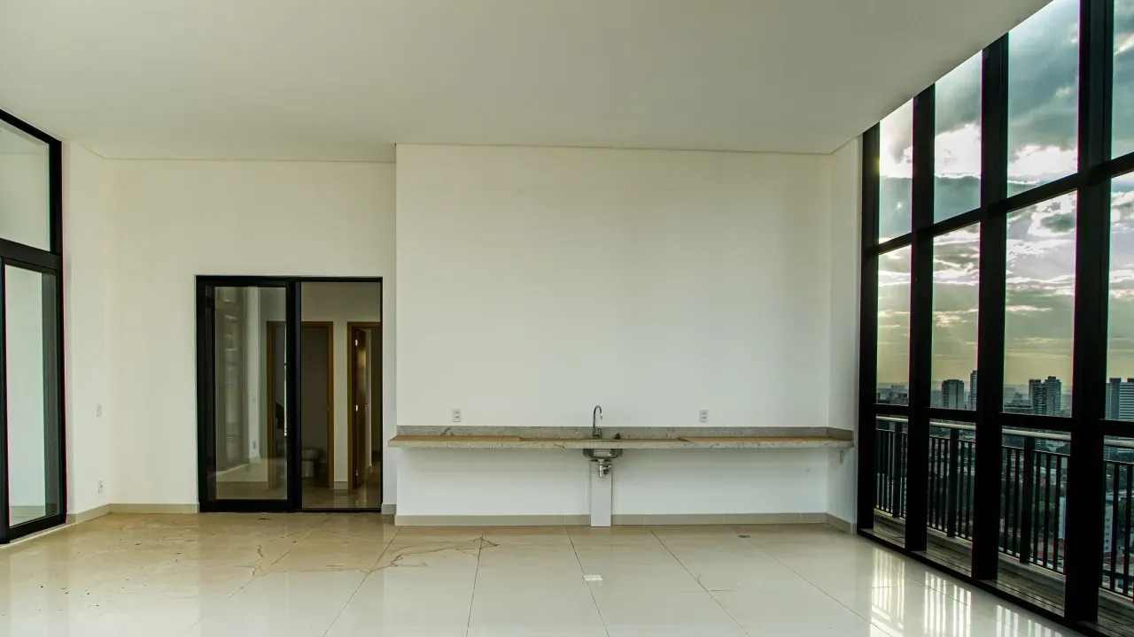 Cobertura de 4 suítes à venda no Edifício Lumina Marista, Setor Marista, Goiânia. 3 coisas que mais amamos nesta cobertura: Janelas: Com certeza uns dos pontos mais marcantes da cobertura, as janelas se abrem para uma vista panorâmica deslumbrante, integrando os mundos interno e externo. Industrial: Das linguagens visuais, o toque industrial se sobressai nesta cobertura. Um bom designer de interiores saberá desenvolver um projeto neste estilo de forma única. Completo: O prédio oferece piscina, espaço gourmet, sauna, salão de festas, academia, além do lazer privativo. Desfrute.