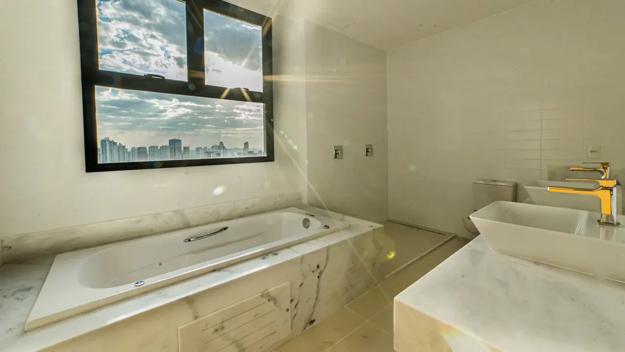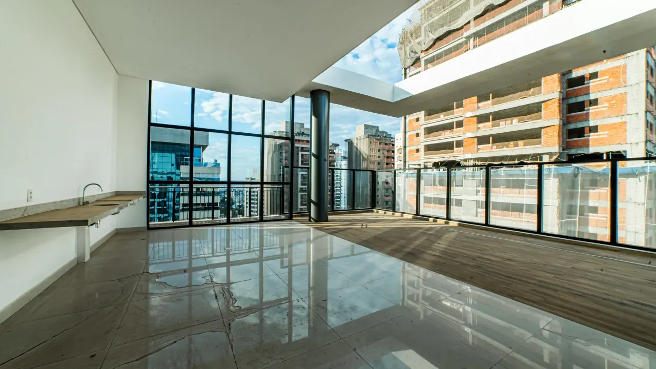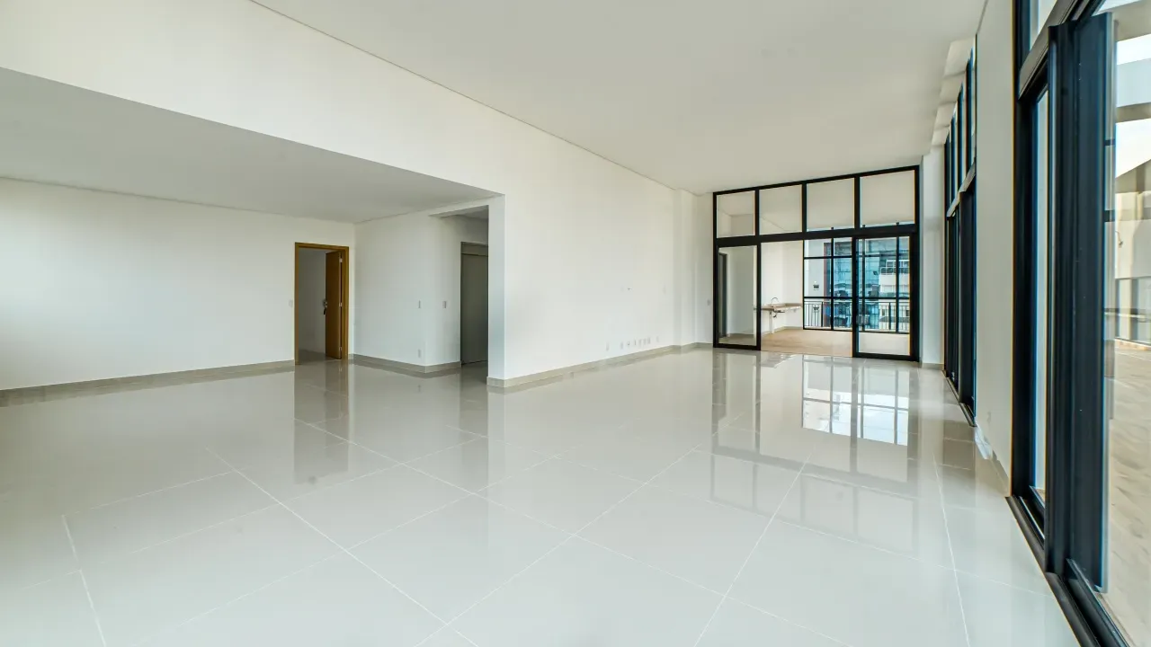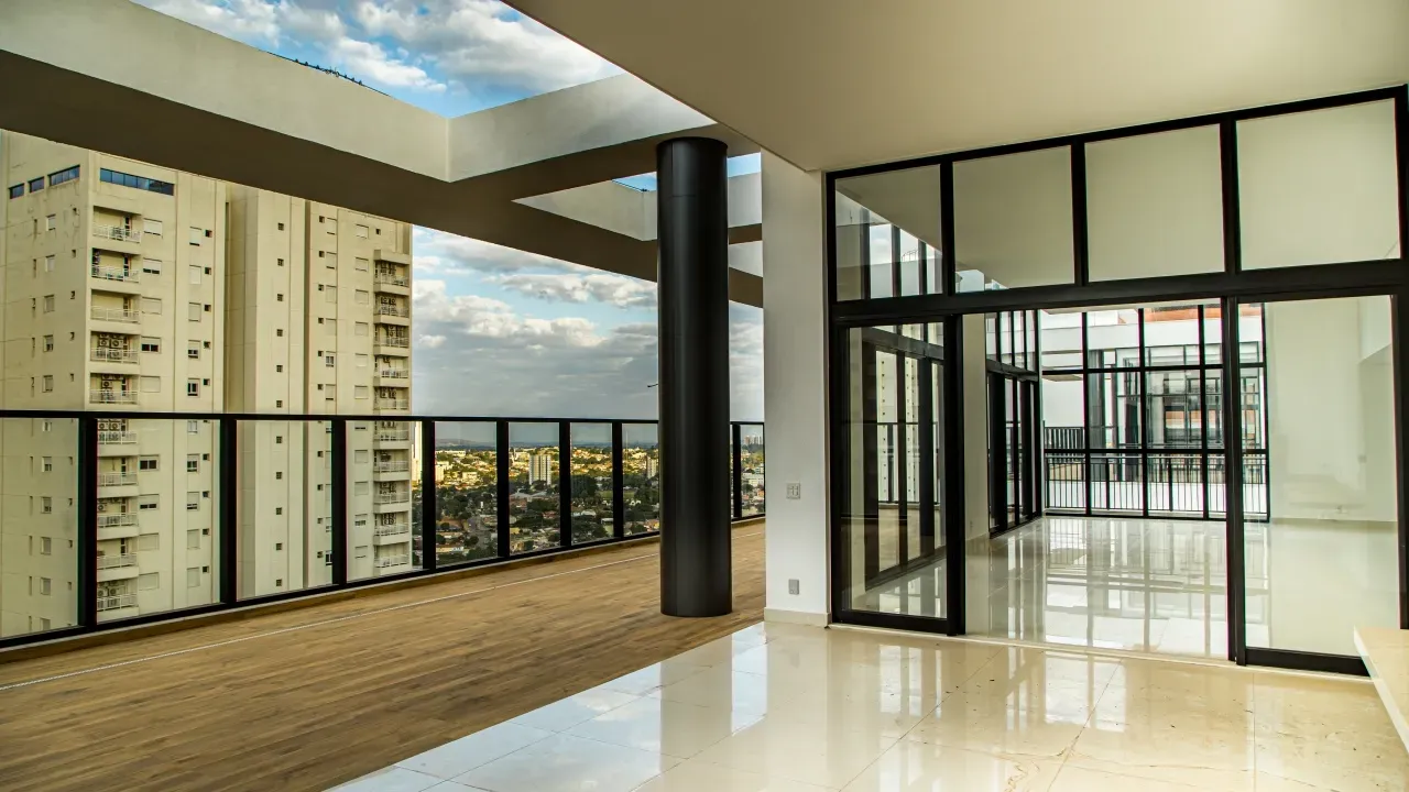 Cobertura de 4 suítes à venda no Edifício Lumina Marista, Setor Marista, Goiânia. 3 coisas que mais amamos nesta cobertura: Janelas: Com certeza uns dos pontos mais marcantes da cobertura, as janelas se abrem para uma vista panorâmica deslumbrante, integrando os mundos interno e externo. Industrial: Das linguagens visuais, o toque industrial se sobressai nesta cobertura. Um bom designer de interiores saberá desenvolver um projeto neste estilo de forma única. Completo: O prédio oferece piscina, espaço gourmet, sauna, salão de festas, academia, além do lazer privativo. Desfrute.