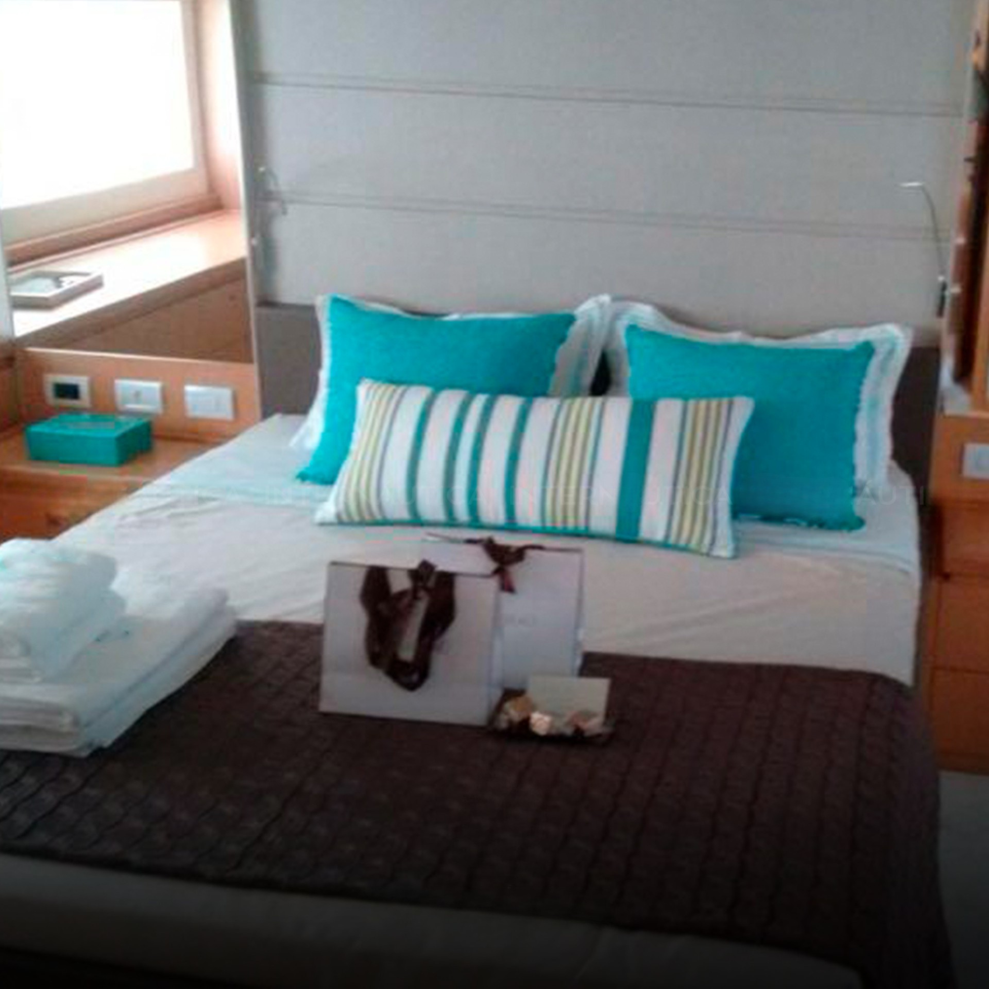 Antena TV, Ar Condicionado, Boiler, Bowthruster, Bússola, Capa, Capota, Carregador de Baterias, Churrasqueira, Chuveiro de Popa, Cristaleira, Comando Eletrônico, Direção Hidráulica, Farol Robotizado, Flaps Hidráulicos, Fogão Elétrico, Freezer, Geladeira, Geleira, Gerador, Gerador KVA: 21,5, GPS, GPS Fly, Guincho Elétrico, Iluminação Subaquática, Inversor, Plataforma Submergível, Microondas, Piloto Automático, Plotter, Radar, Rádio VHF, Rádio VHF Fly, SKY, Solário de Popa, Solário de Proa, Som, Sonda, Strobolight, Targa, Teka Patamar de Popa, Teka Praça de Popa, Teka Cockpit, Televisão, Tomada de Cais, WC Elétrico, Defensa, Extintor, Quartos: 3, Banheiros: 3