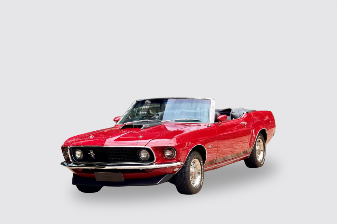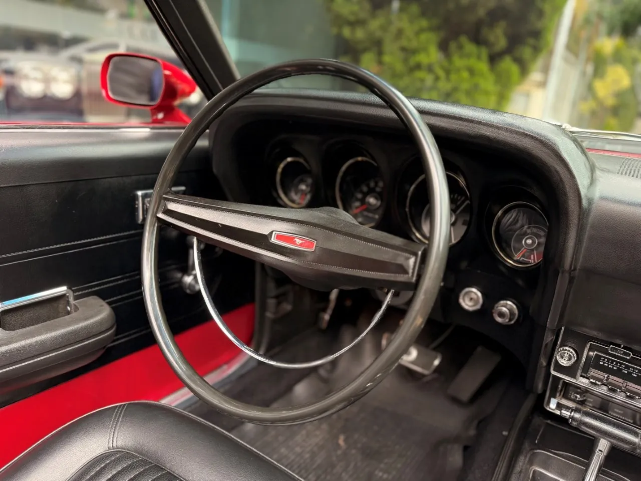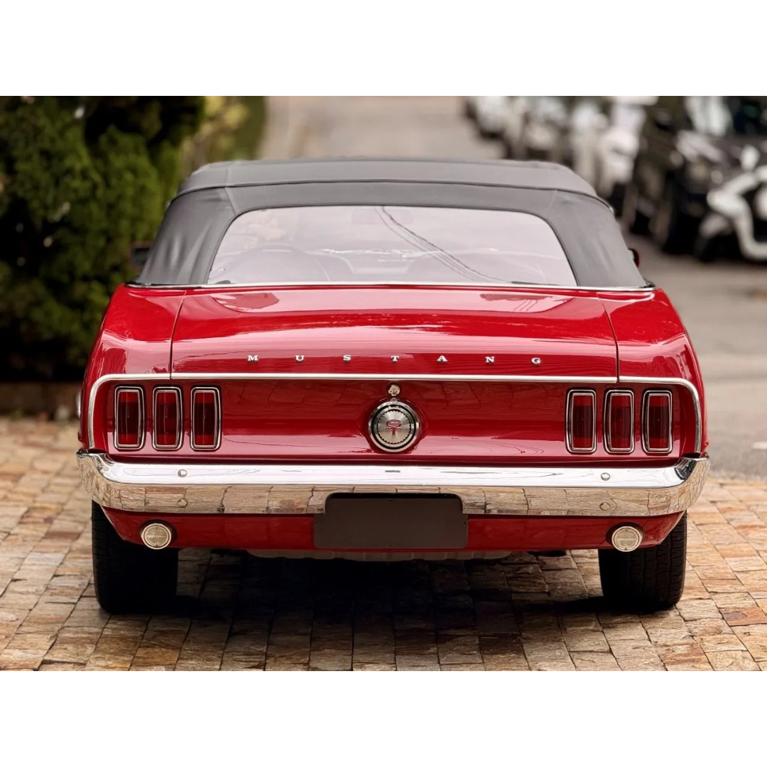 Desde zero no Brasil, nosso Mustang está simplesmente impecável! Motor V8 – 351W e câmbio automático. Estima-se que pouco mais de mil unidades do Mustang GT conversível foram produzidas nesse ano, o que faz dele uma verdadeira peça para colecionadores. O Ford Mustang é um daqueles carros que marcam época, tanto pelo design quanto pelo que representa. Naquele final de década, o Mustang já era um ícone, lançado em 1964, ele praticamente inaugurou o conceito de “pony car”, misturando esportividade acessível com estilo marcante. Em 1969, a Ford fez uma grande reestilização no carro, com um visual mais agressivo: o Mustang ficou maior, mais largo, com faróis duplos na dianteira (dois embutidos na grade e dois nas pontas dos para-lamas) e linhas mais musculosas. O GT ainda trazia detalhes esportivos, como faixas decorativas, emblemas específicos e suspensão mais firme.