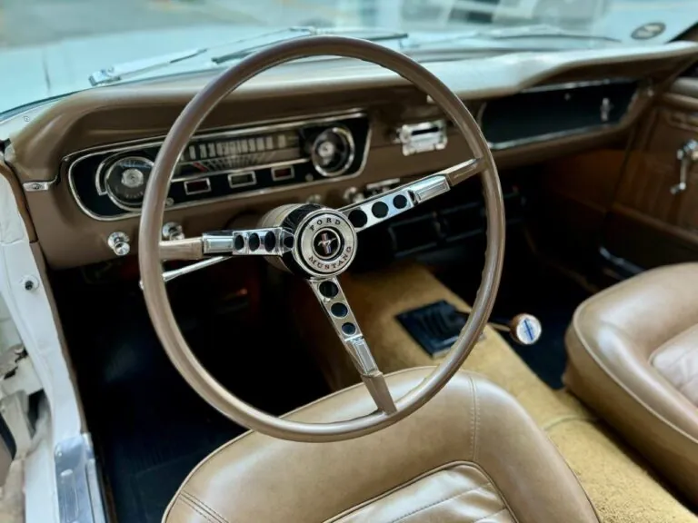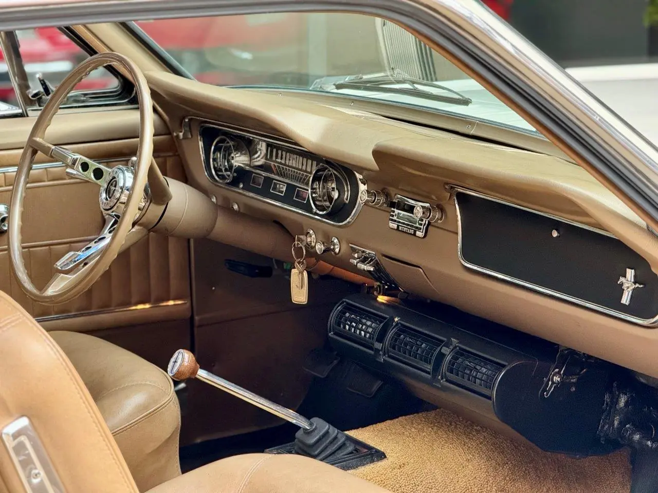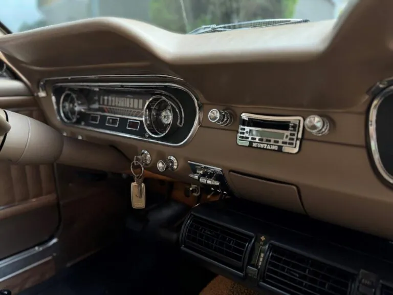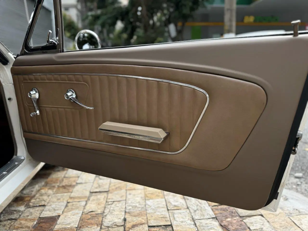 Denominado no mercado mundial como 64 1/2 pois foi o primeiro Mustang produzido no ano de 64, mas no segundo semestre… sendo assim já era modelo 65. Todo original, esse Mustang possui motor V8-260, câmbio mecânico de 3 velocidades no assoalho e tapeçaria original do carro. Possui ar condicionado instalado posteriormente. Este Automóvel é matching number e está com placa preta. Único!