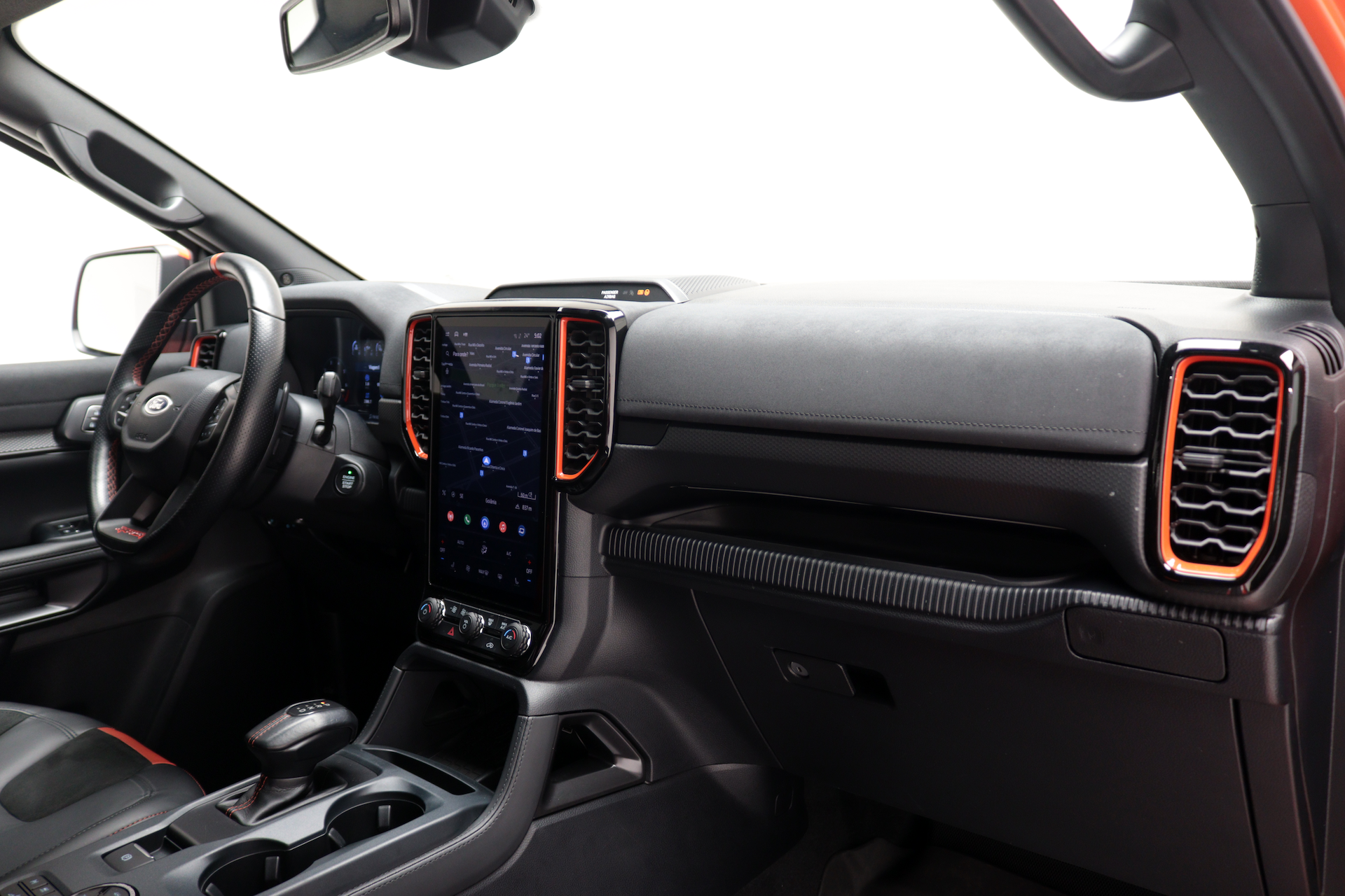 BANCOS: esportivos inspirados em caças a jato, com detalhes em Laranja