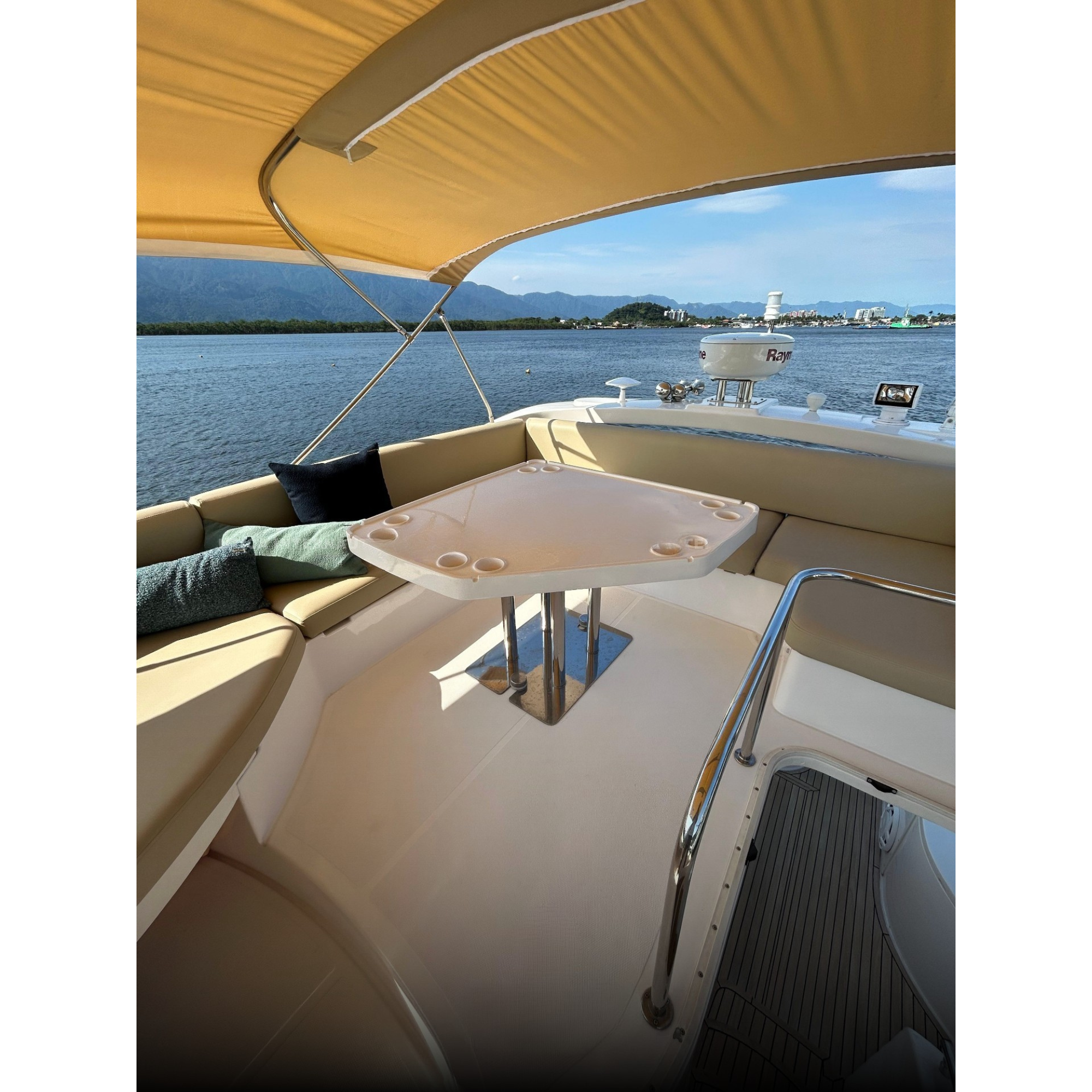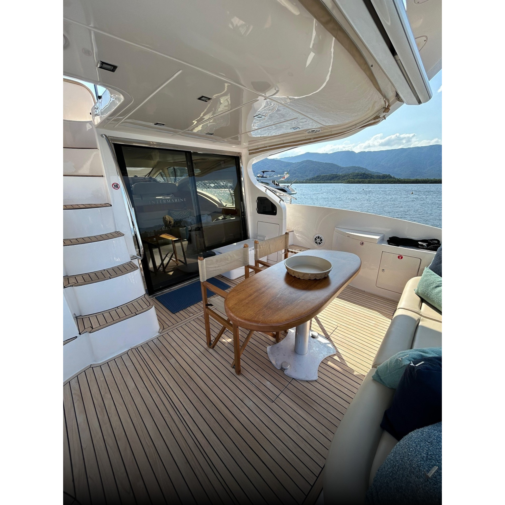 Antena TV, Ar Condicionado, Boiler, Carregador de Baterias, Carreta, Churrasqueira, Chuveiro de Popa, Cristaleira, Comando Eletrônico, Farol Robotizado, Fechamento Completo, Flaps Hidráulicos, Fogão Elétrico, Freezer, Gerador, GPS, GPS Fly, Guincho Elétrico, Joystick, Microondas, Passarela Hidráulica, Radar, Rádio VHF, Rádio VHF Fly, Solário de Proa, Som, Sonda, Teka Patamar de Popa, Teka Praça de Popa, Teka Cockpit, Televisão, Tomada de Cais, WC Elétrico