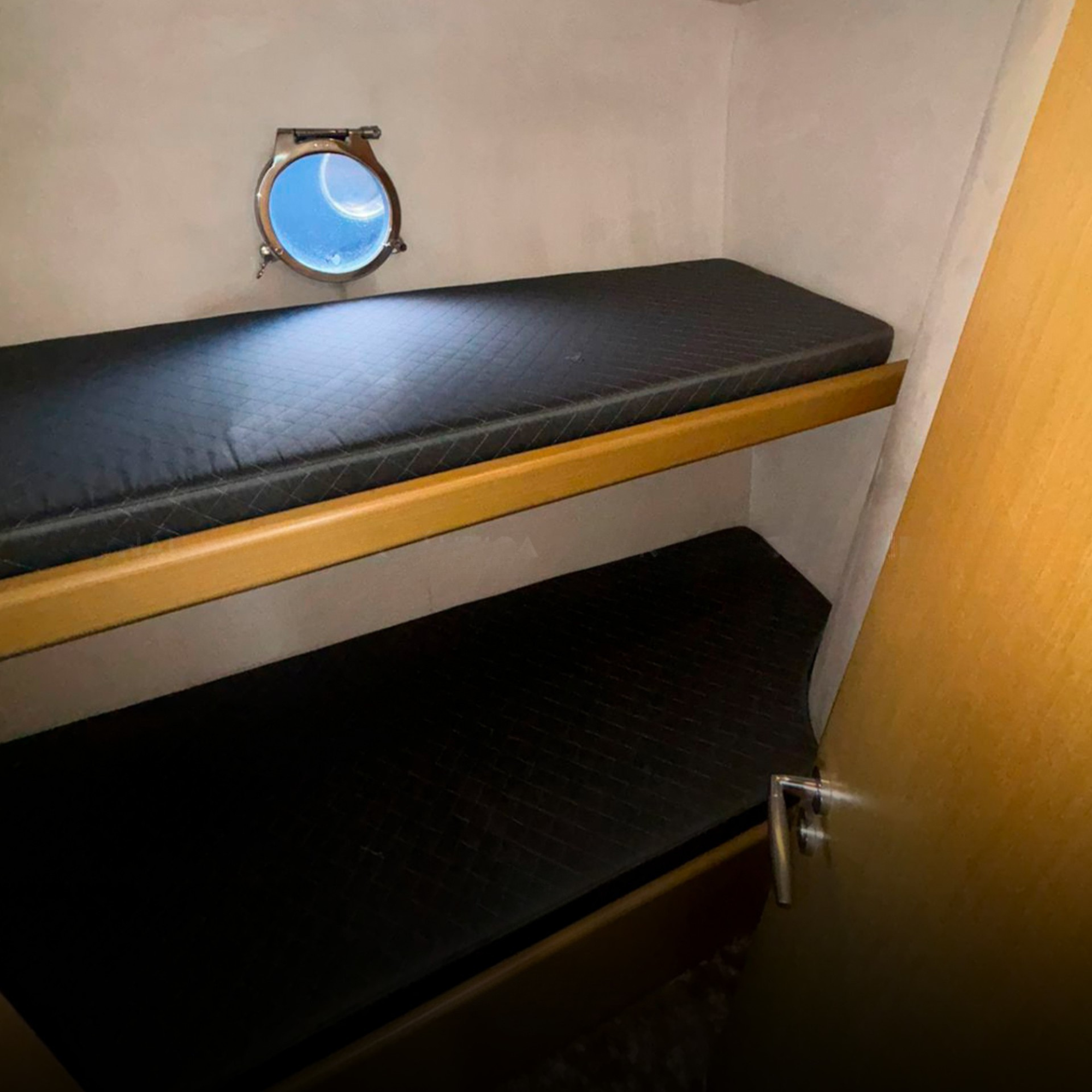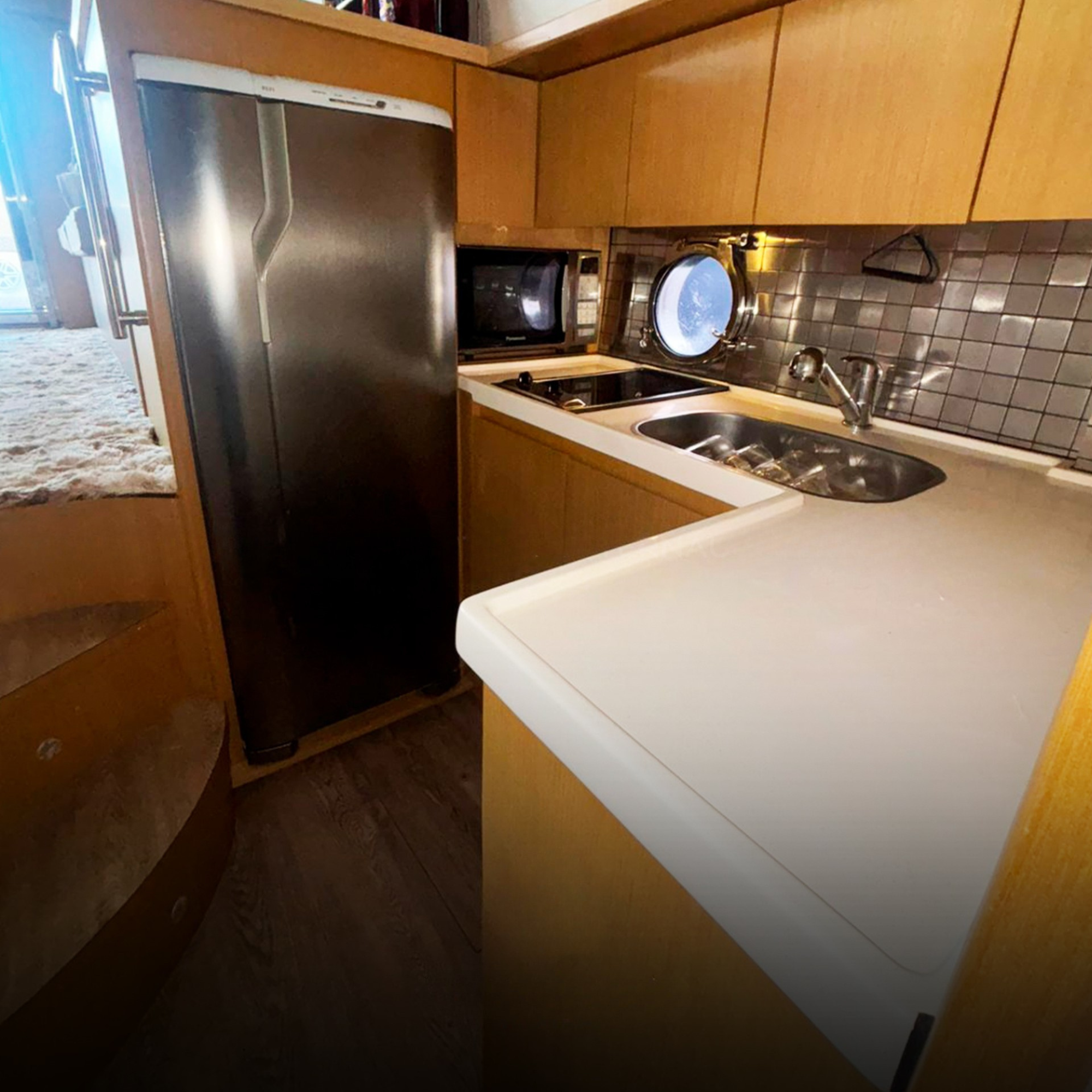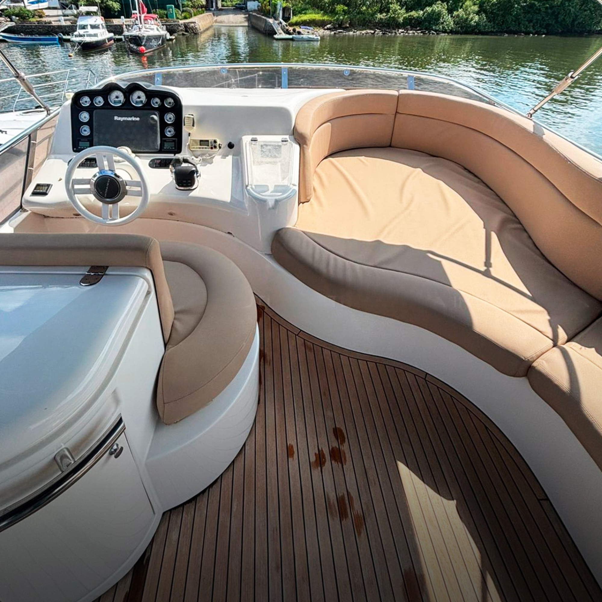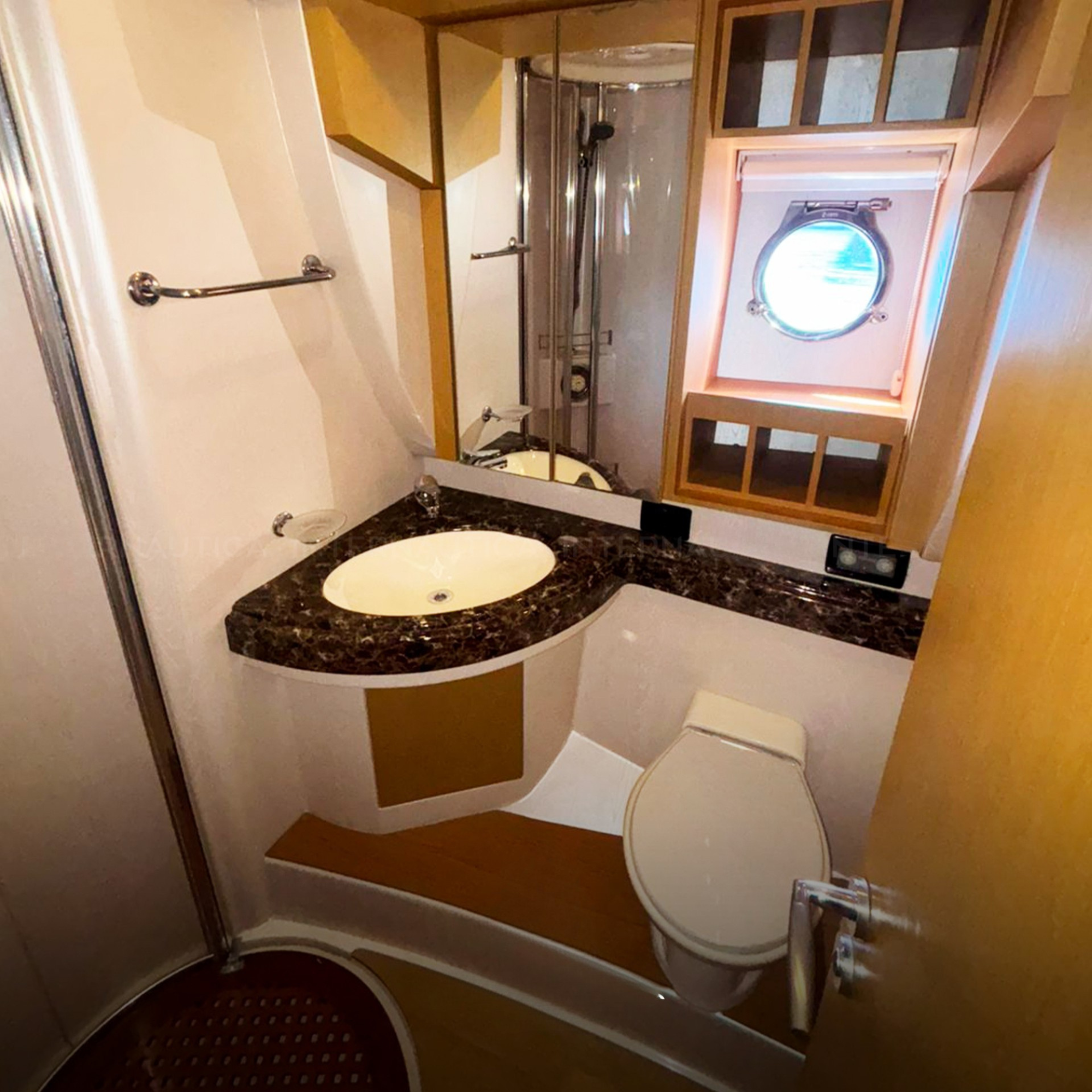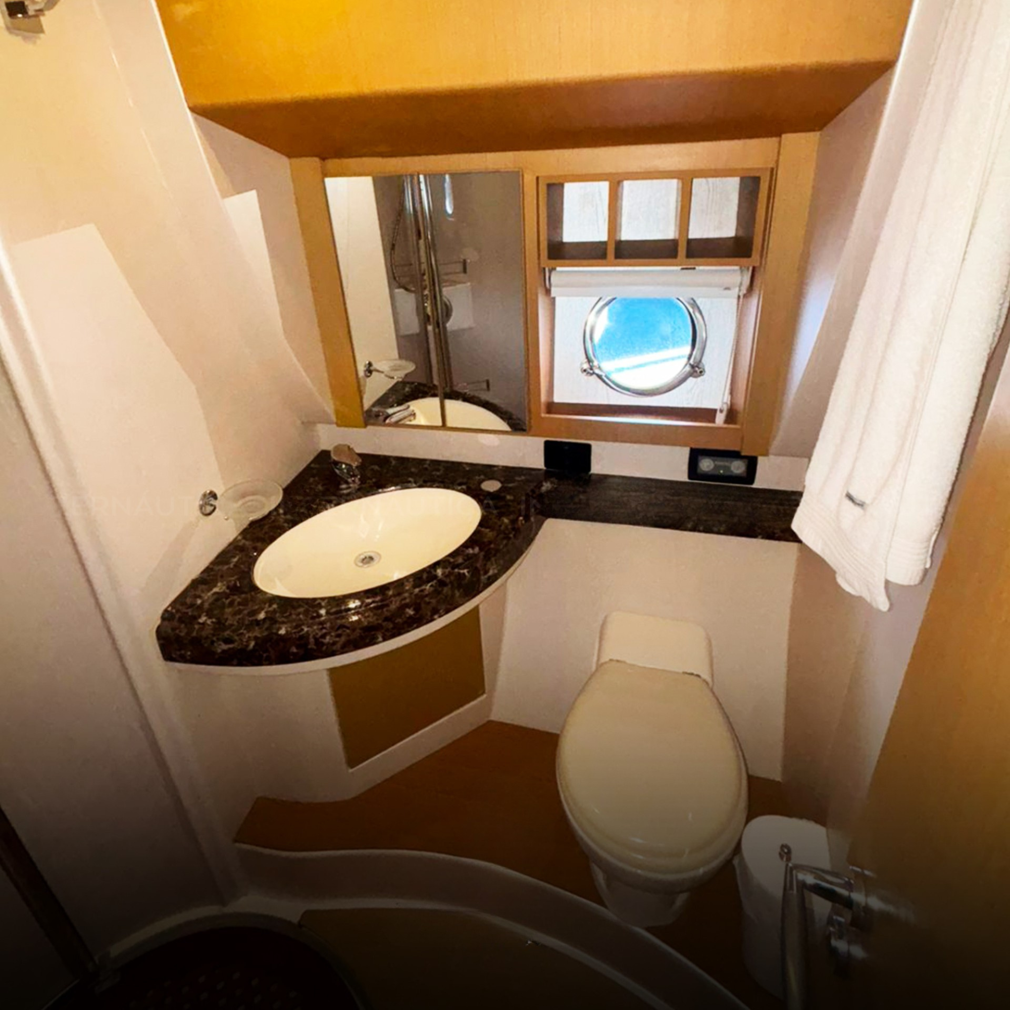 Antena TV, Ar Condicionado, Boiler, Bússola, Capota, Carregador de Baterias, Churrasqueira, Chuveiro de Popa, Cristaleira, Comando Eletrônico, Direção Hidráulica, Farol Robotizado, Flaps Hidráulicos, Geladeira, Geleira, Gerador, Gerador Horas: 1053, GPS, GPS Fly, Guincho Elétrico, Inversor, Rádio VHF, Rádio VHF Fly, Solário de Proa, Som, Sonda, Strobolight, Teka Patamar de Popa, Teka Praça de Popa, Televisão, Tomada de Cais, WC Elétrico