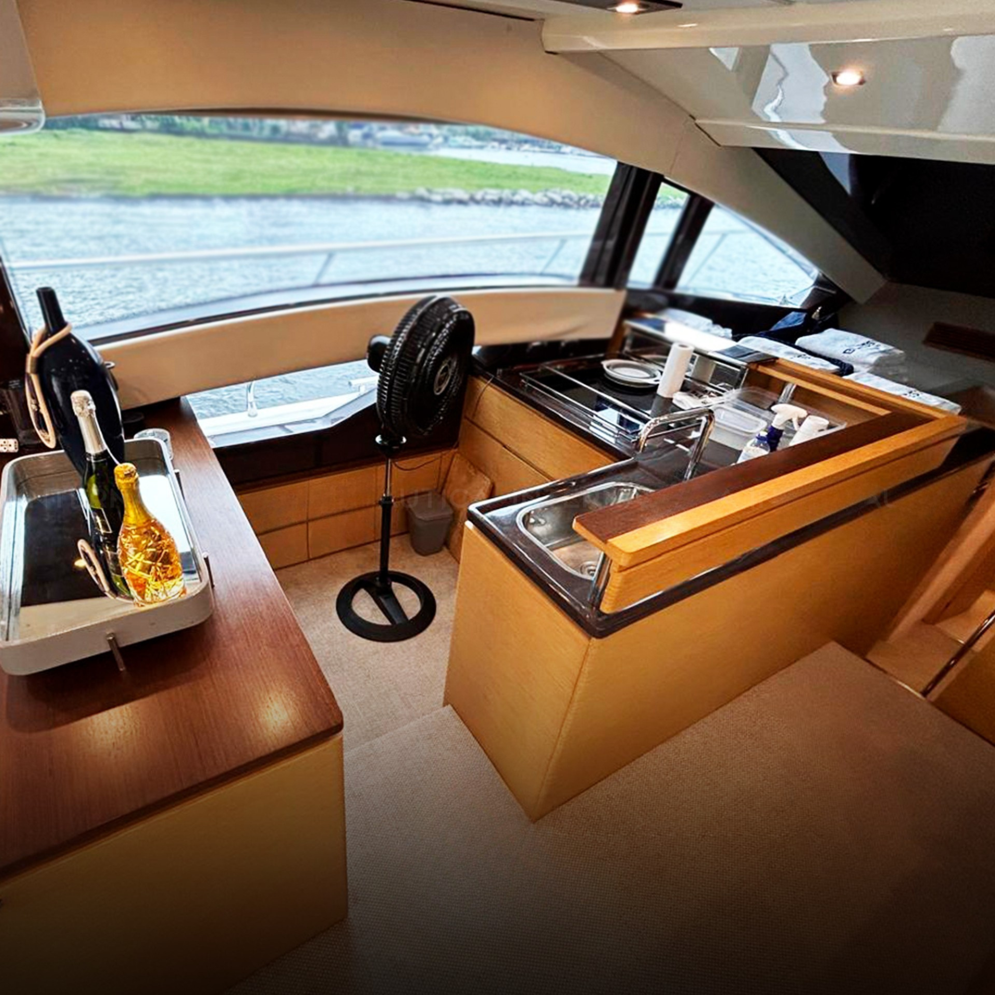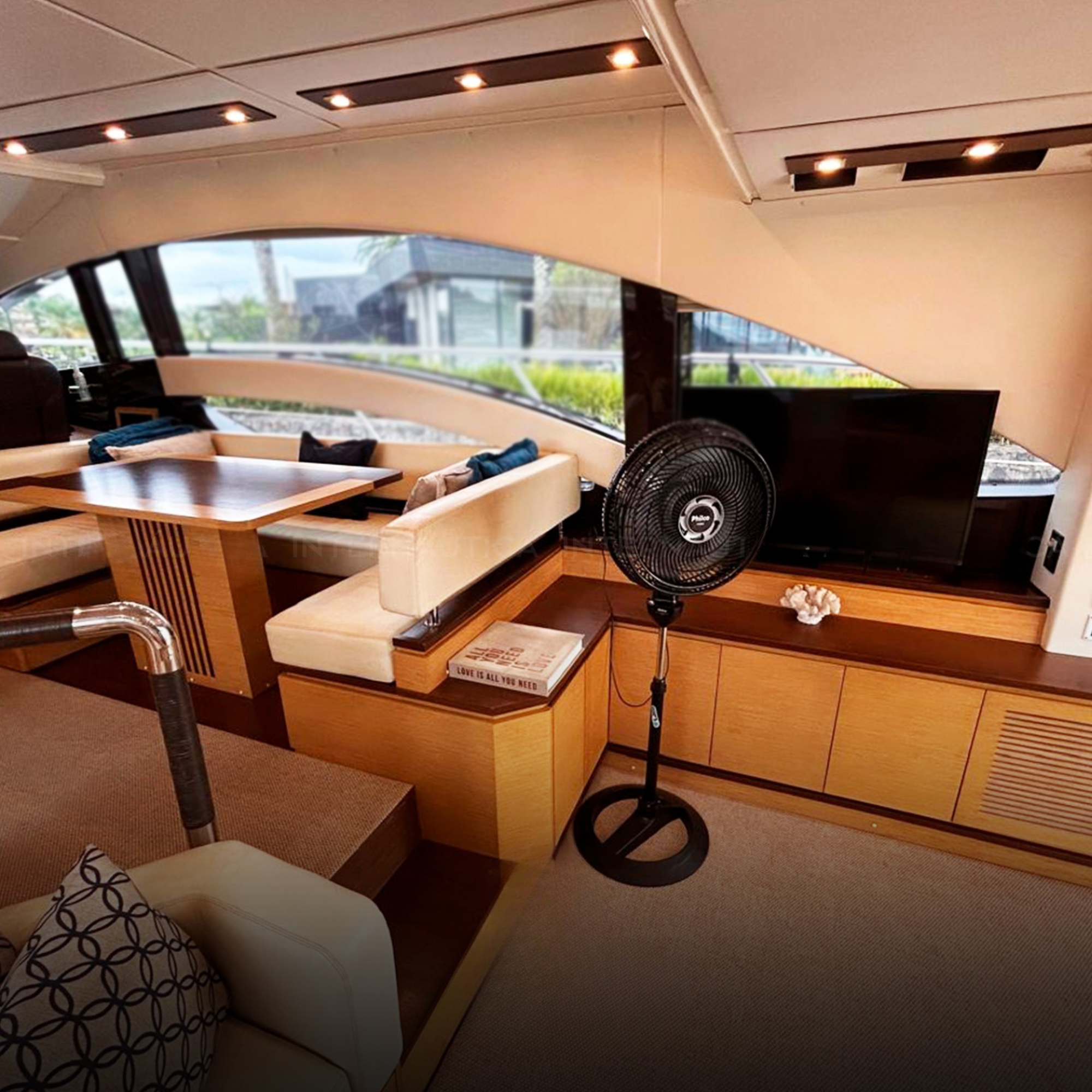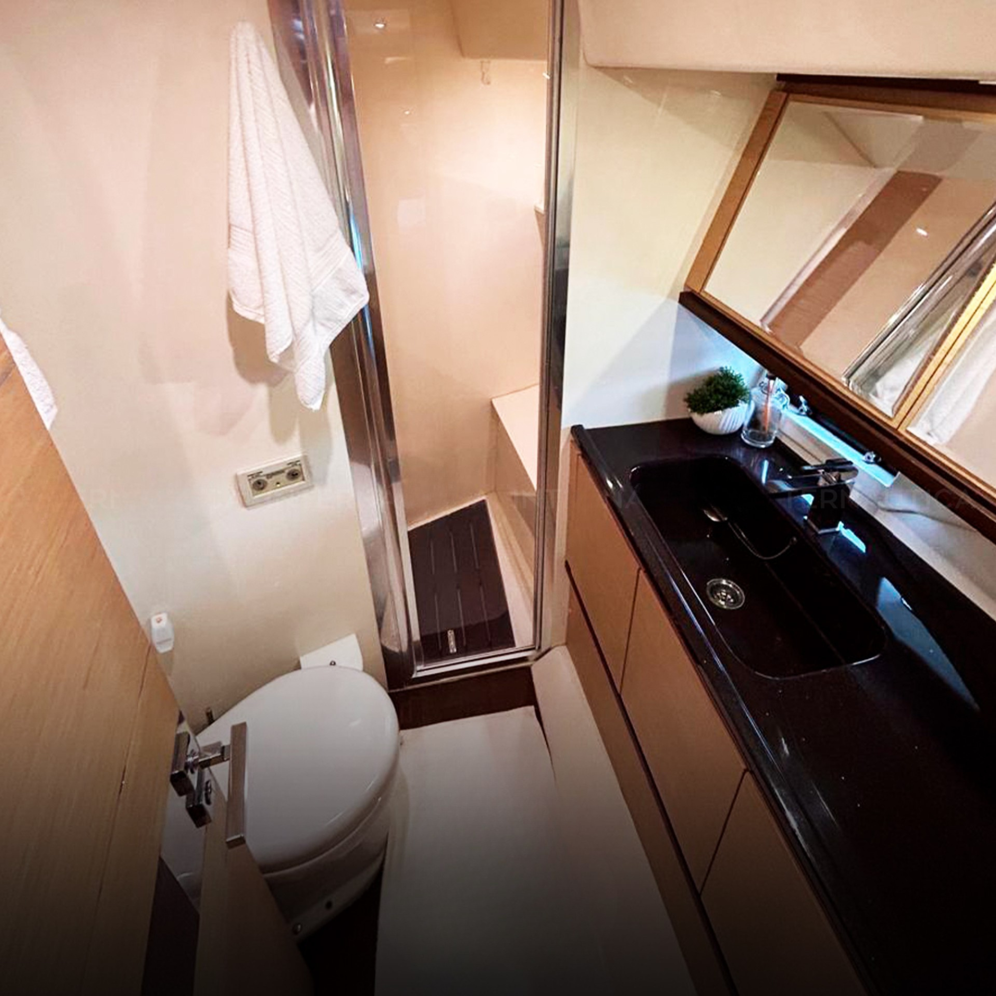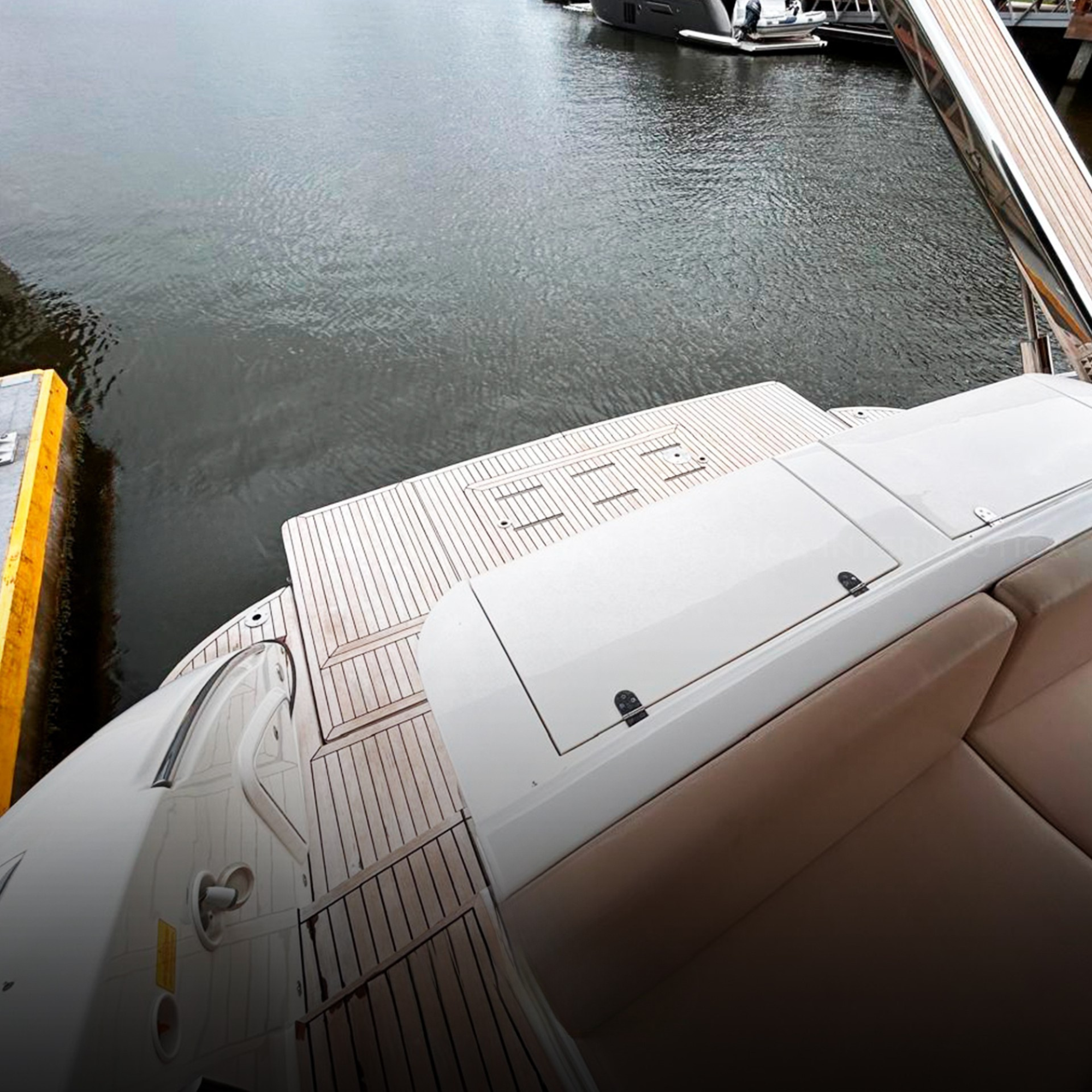 Antena TV, Ar Condicionado, Boiler, Bússola, Capota, Carregador de Baterias, Churrasqueira, Chuveiro de Popa, Cristaleira, Comando Eletrônico, Farol Robotizado, Flaps Hidráulicos, Fogão Elétrico, Geladeira, Geleira, Gerador, GPS, GPS Fly, Guincho Elétrico, Inversor, Plataforma Submergível, Piloto Automático, Rádio VHF, Som, Sonda, Teka Patamar de Popa, Teka Praça de Popa, Televisão, Tomada de Cais, WC Elétrico, Quartos: 3, Banheiros: 3