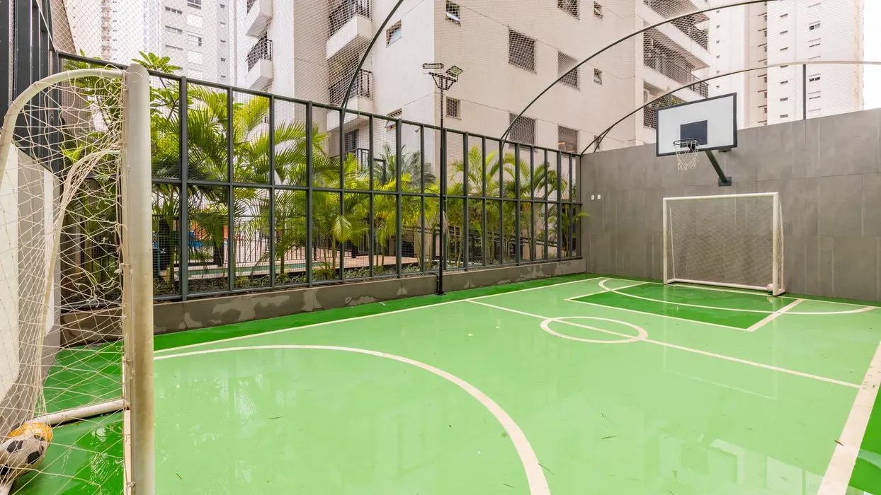 O apartamento também conta com seis banheiros bem distribuídos, todos com acabamentos refinados. A área de lazer do condomínio é completa, com piscina, sauna, salão de festas, espaço gourmet e muito mais, garantindo momentos de relaxamento e diversão para toda a família. Além disso, o condomínio oferece serviços como academia, portaria 24h e estacionamento, garantindo segurança e comodidade aos moradores.