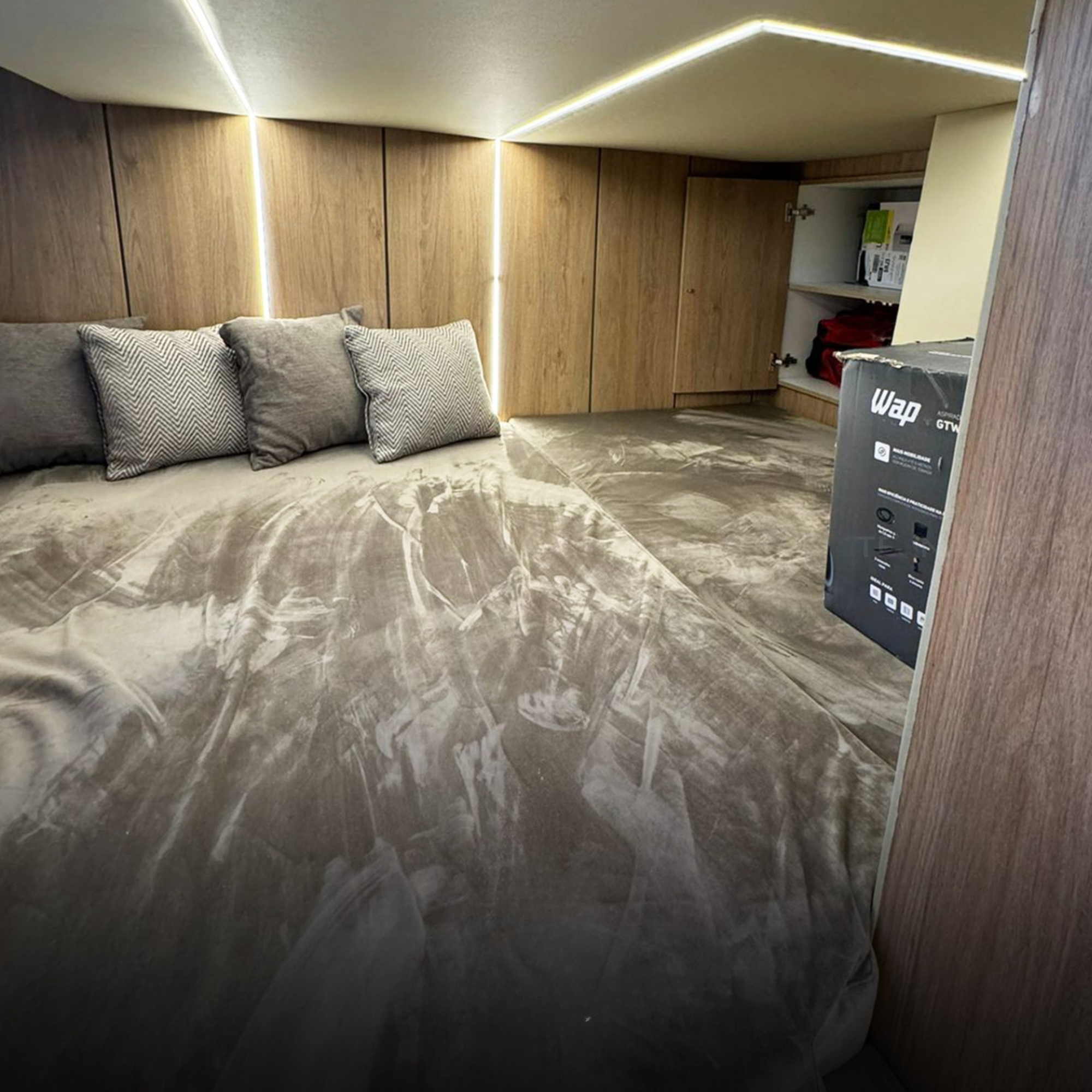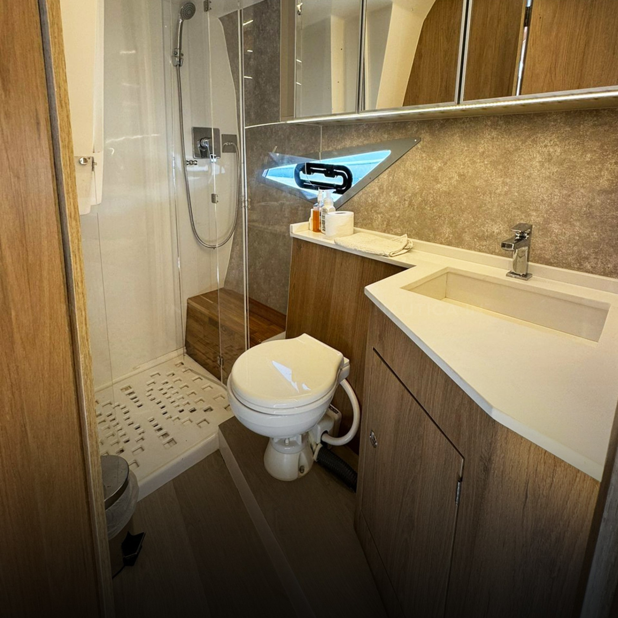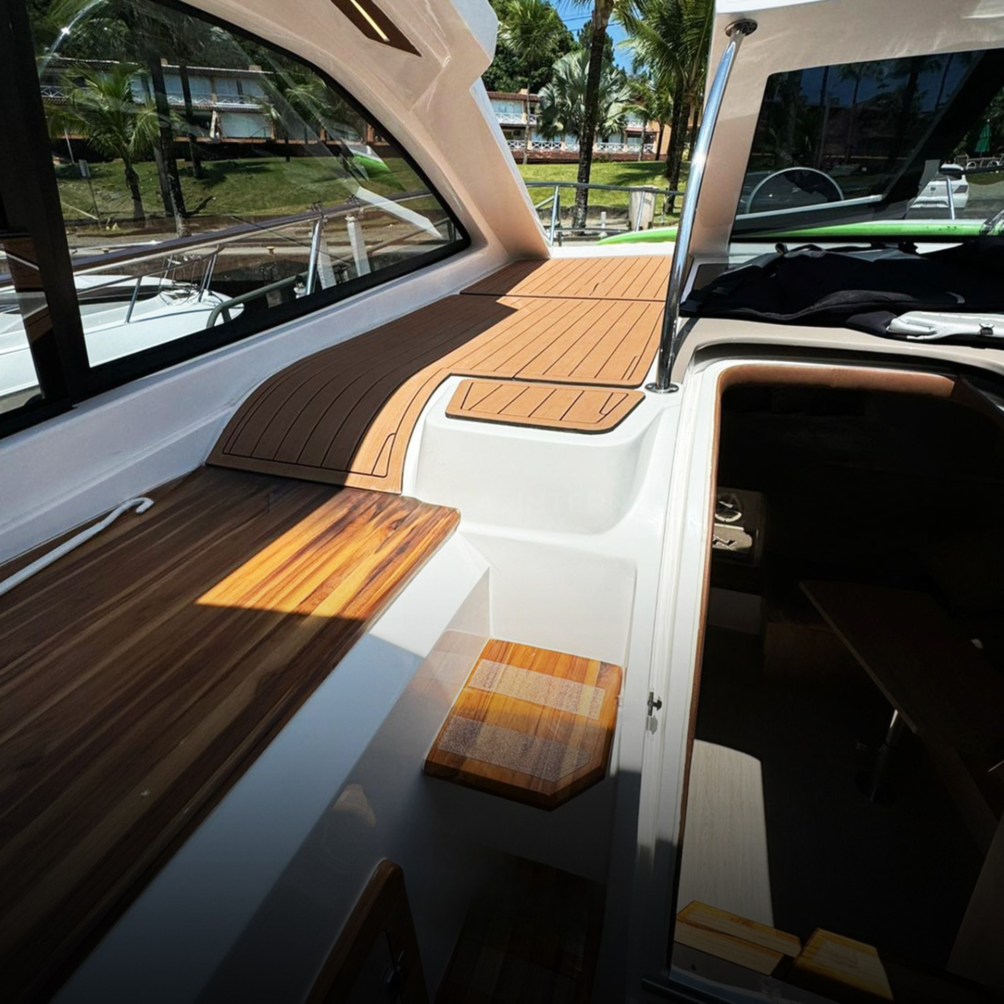 Antena TV, Ar Condicionado, Boiler, Carregador de Baterias, Churrasqueira, Chuveiro de Popa, Cristaleira, Comando Eletrônico, Fogão Elétrico, Geladeira, Geleira, Gerador, GPS, Guincho Elétrico, Inversor, Joystick, Microondas, Rádio VHF, Solário de Popa, Som, Sonda, Strobolight, Targa, Teka Patamar de Popa, Teka Praça de Popa, Teka Cockpit, Televisão, Tomada de Cais, WC Elétrico
