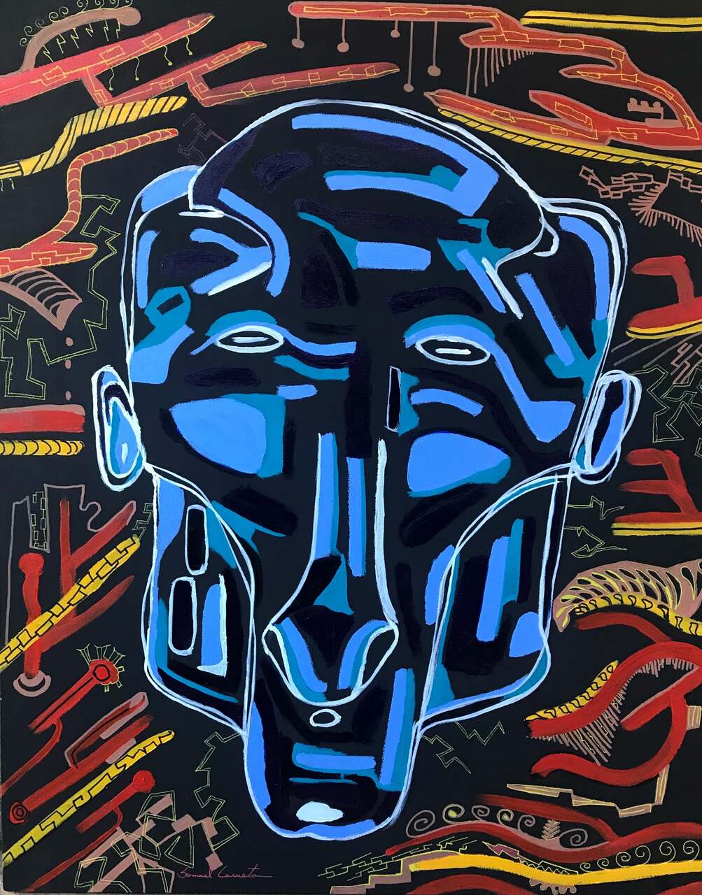 Nesta obra, celebro a diversidade dos olhares e como cada pessoa enxerga o mundo de maneira única. Valorizo a visão individual de cada ser humano, pois ela é como um universo particular de perspectivas diferentes das nossas próprias. Cada um de nós carrega consigo princípios e valores que nos foram transmitidos ao longo da vida, moldando a forma como percebemos o mundo ao nosso redor. Retrato essa rica pluralidade de visões através dos símbolos e cores que usei. As cores vivas de azuis e contrastantes expressam a multiplicidade de olhares que se entrelaçam, criando um mosaico de experiências e entendimentos. Os traços livres de vermelho e amarelo fluidos refletem a liberdade que cada pessoa tem para expressar sua própria ótica. Através dessa obra, busco destacar a importância de valorizar e respeitar as diferentes perspectivas, reconhecendo que cada visão é única e valiosa. Esta pintura, para além de seu valor material, transmite a mensagem da empatia e da compreensão, convidando o espectador a apreciar a diversidade de interpretações que enriquecem nossa jornada coletiva.
