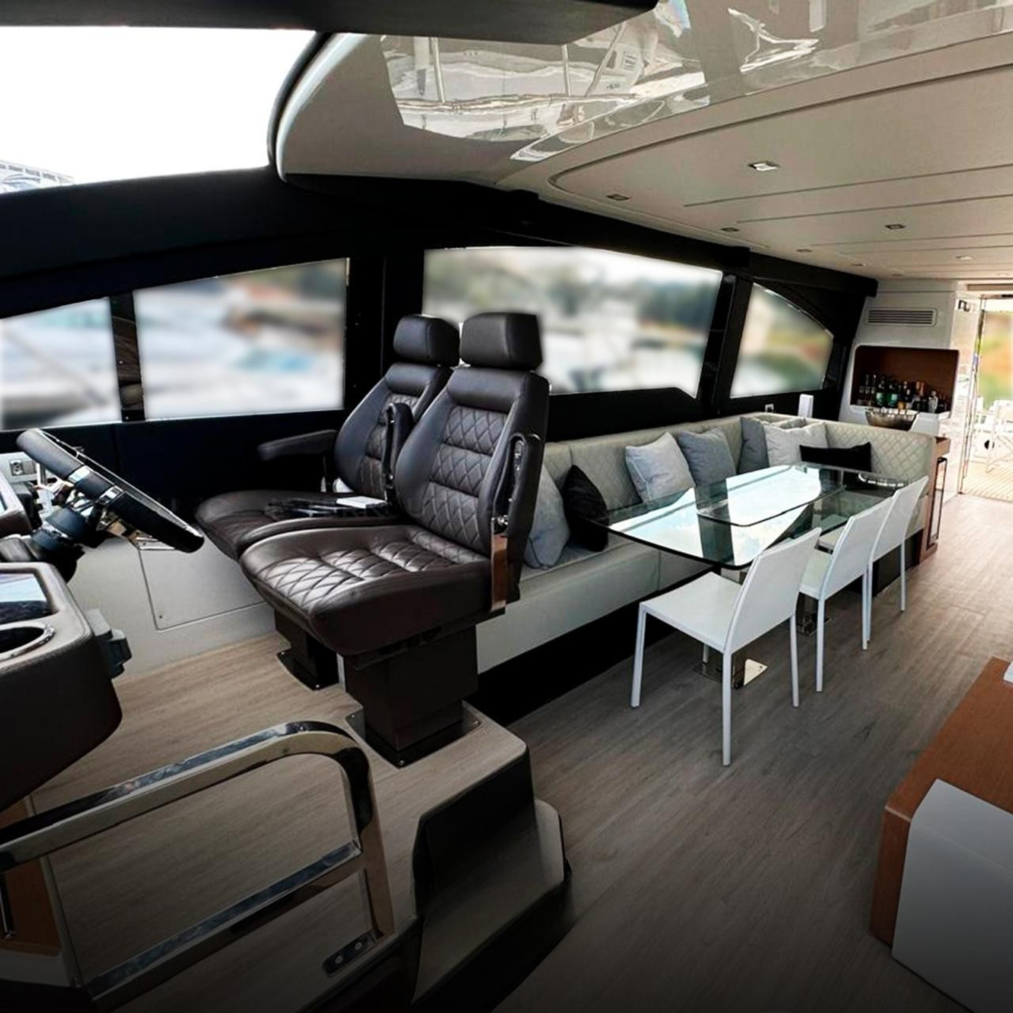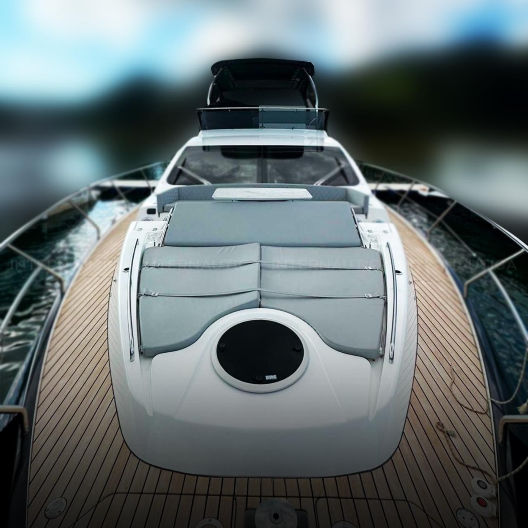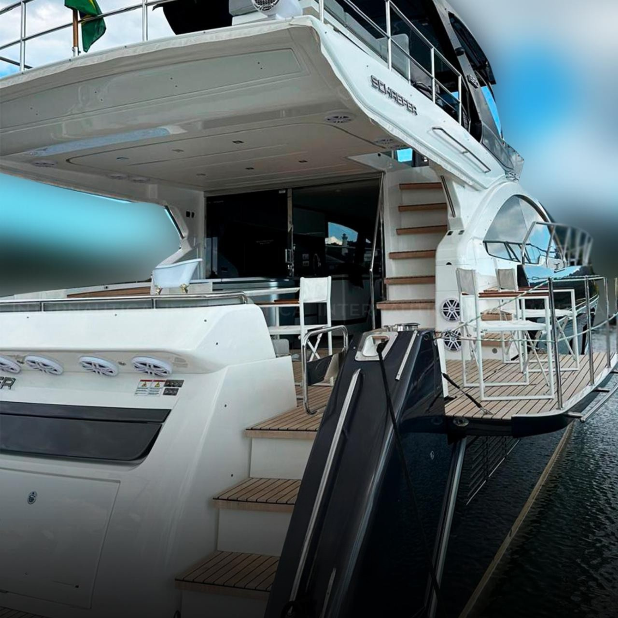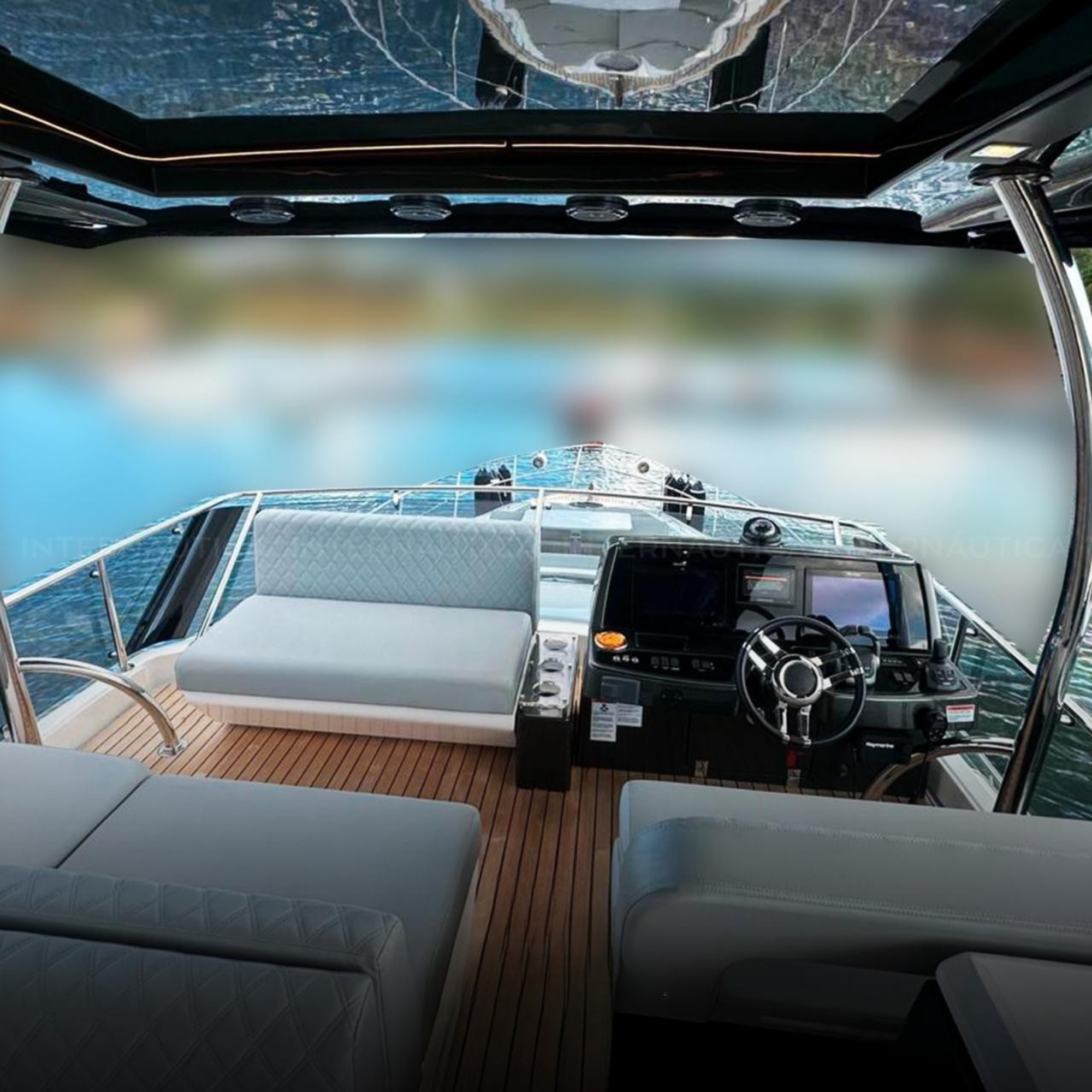 Ar Condicionado, Boiler, Bússola, Carregador de Baterias, Carreta, Churrasqueira, Chuveiro de Popa, Cristaleira, Comando Eletrônico, Dessalinizador, Estabilizador, Farol Robotizado, Flaps Hidráulicos, Fogão Elétrico, Freezer, Geladeira, Gerador, GPS, GPS Fly, Guincho Elétrico, Icemaker, Iluminação Subaquática, Inversor, Joystick, Plataforma Submergível, Microondas, Piloto Automático, Radar, Rádio VHF, Rádio VHF Fly, SKY, Solário de Proa, Som, Sonda, Teka Patamar de Popa, Teka Praça de Popa, Teka Cockpit, Televisão, Tomada de Cais, WC Elétrico