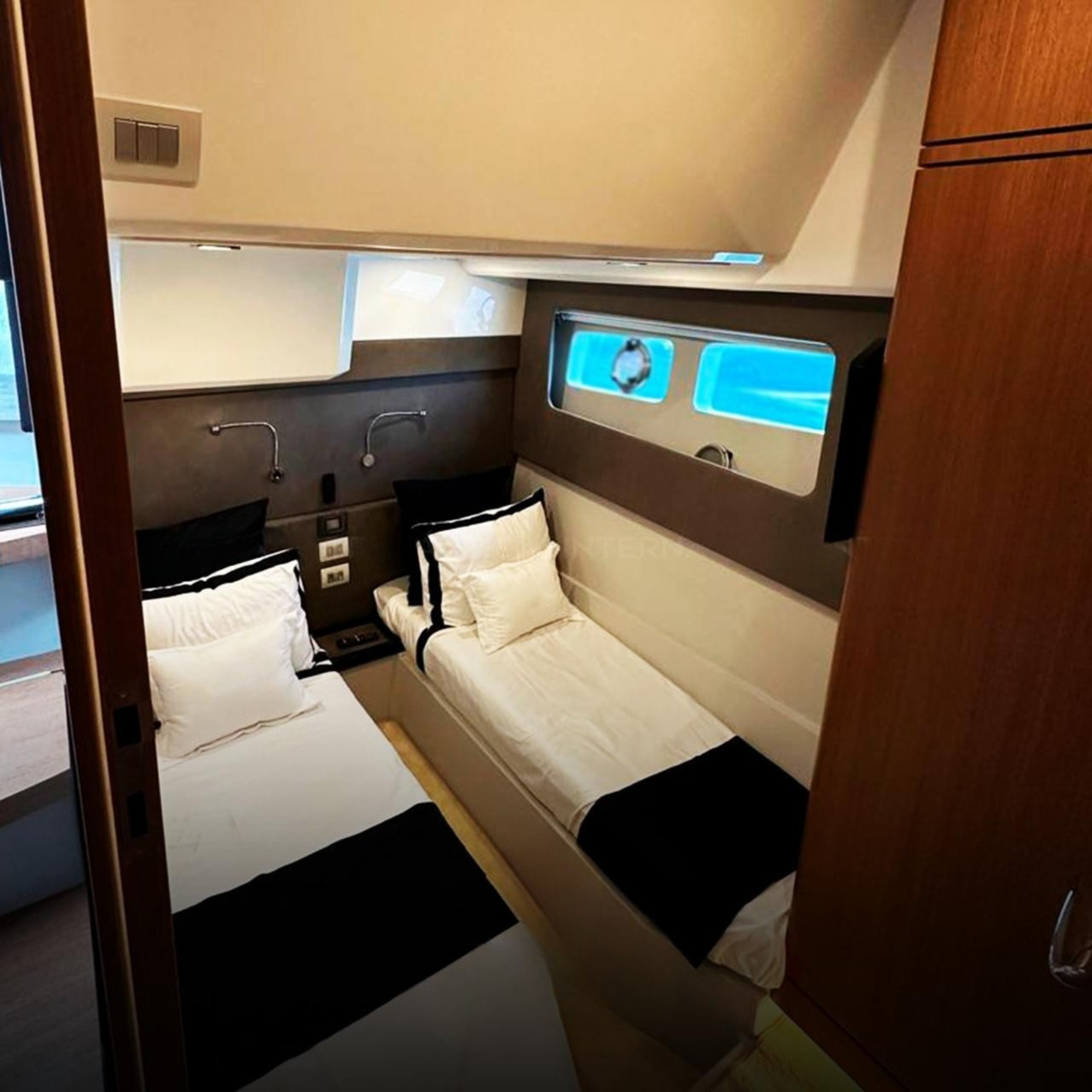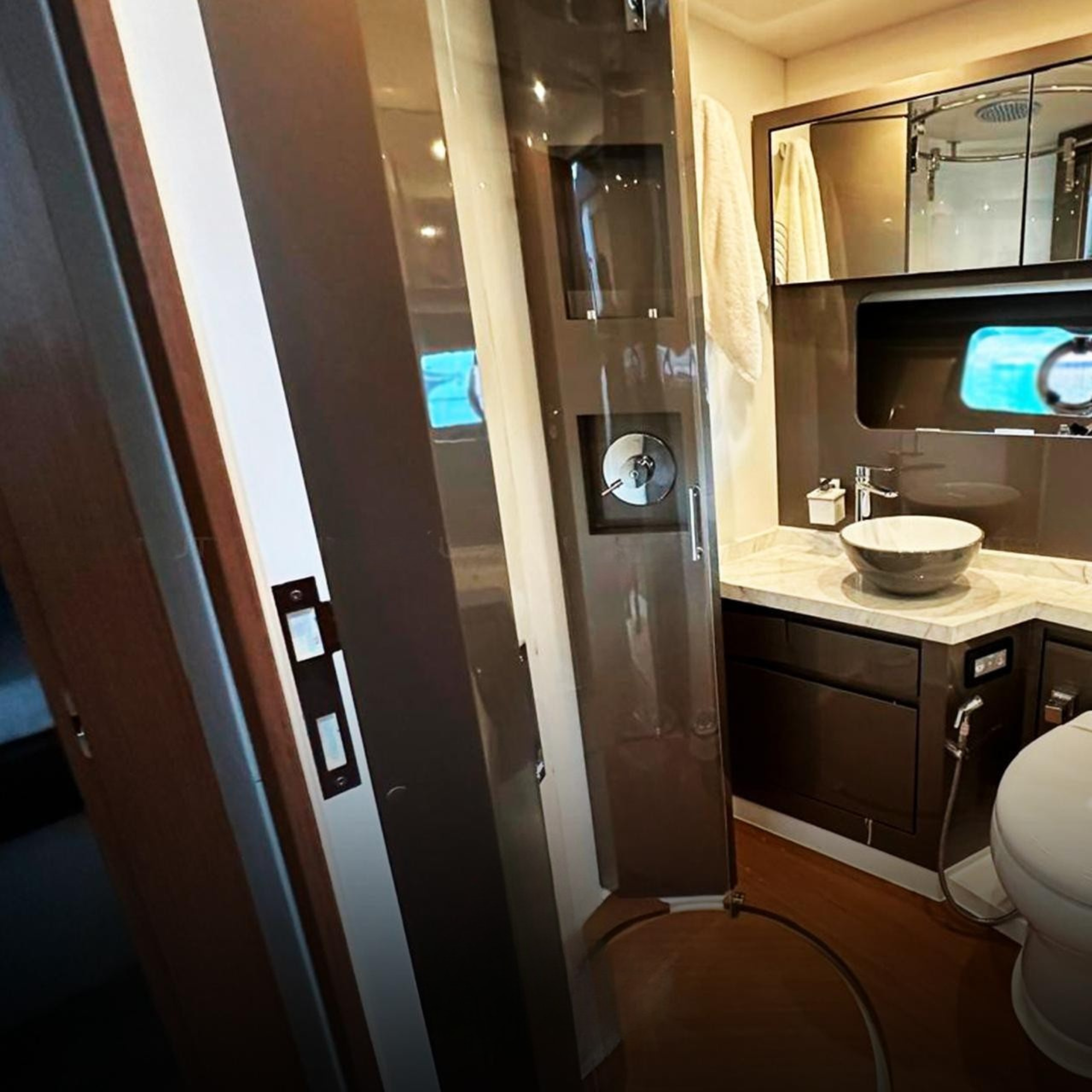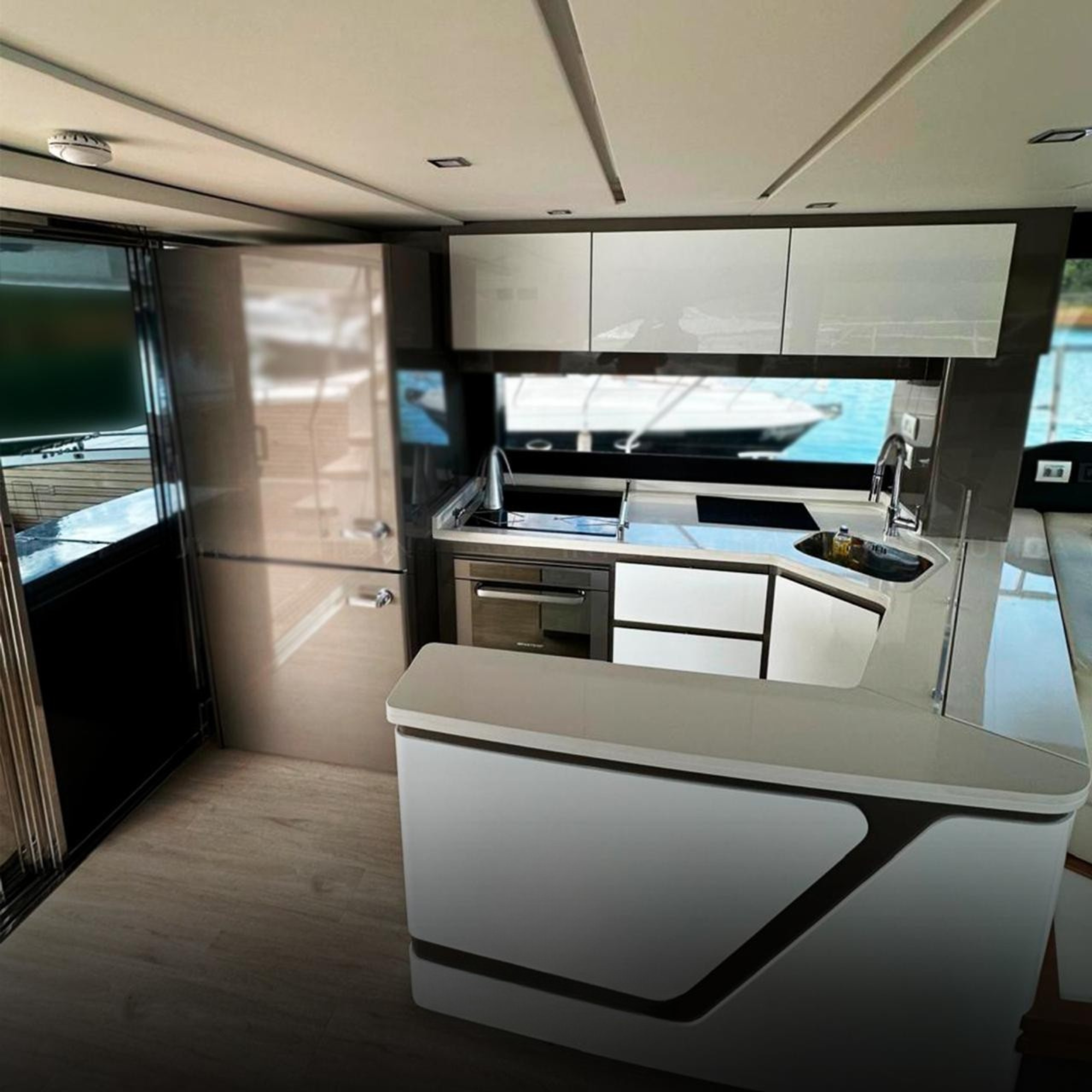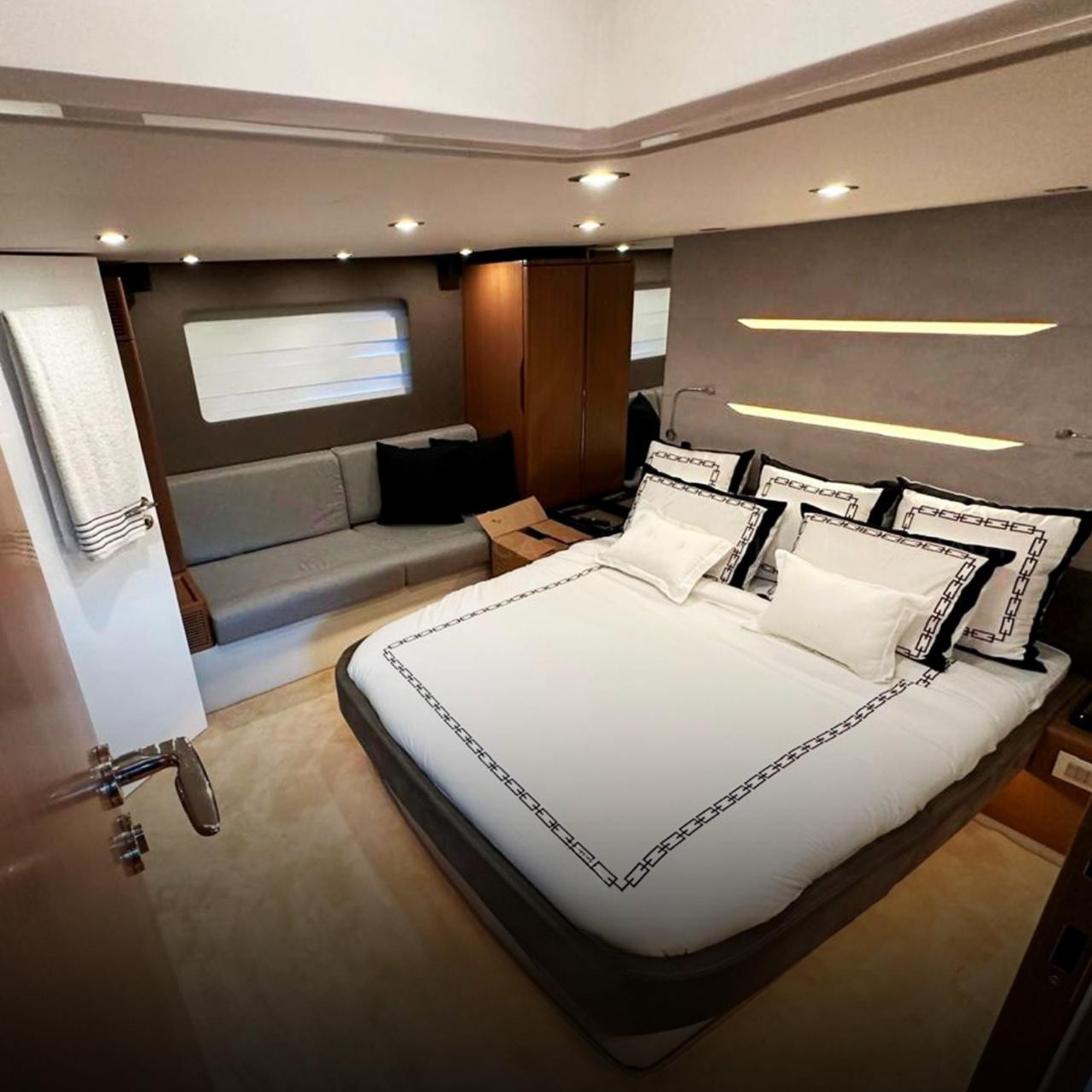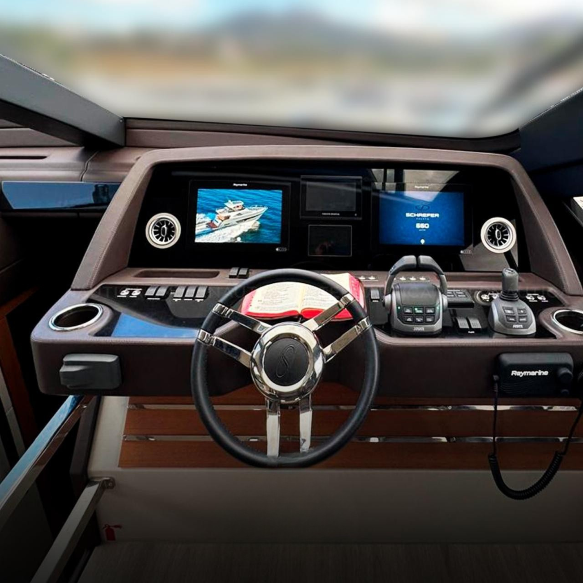Ar Condicionado, Boiler, Bússola, Carregador de Baterias, Carreta, Churrasqueira, Chuveiro de Popa, Cristaleira, Comando Eletrônico, Dessalinizador, Estabilizador, Farol Robotizado, Flaps Hidráulicos, Fogão Elétrico, Freezer, Geladeira, Gerador, GPS, GPS Fly, Guincho Elétrico, Icemaker, Iluminação Subaquática, Inversor, Joystick, Plataforma Submergível, Microondas, Piloto Automático, Radar, Rádio VHF, Rádio VHF Fly, SKY, Solário de Proa, Som, Sonda, Teka Patamar de Popa, Teka Praça de Popa, Teka Cockpit, Televisão, Tomada de Cais, WC Elétrico