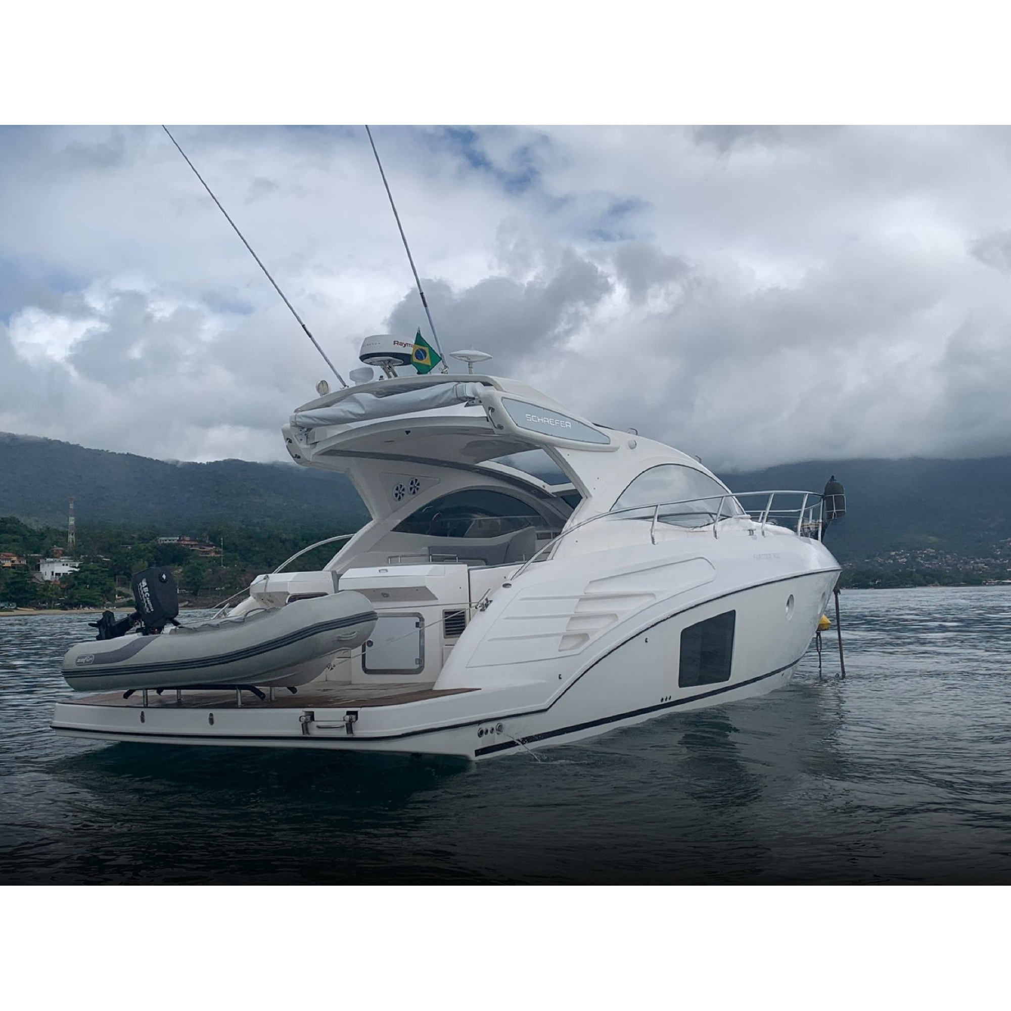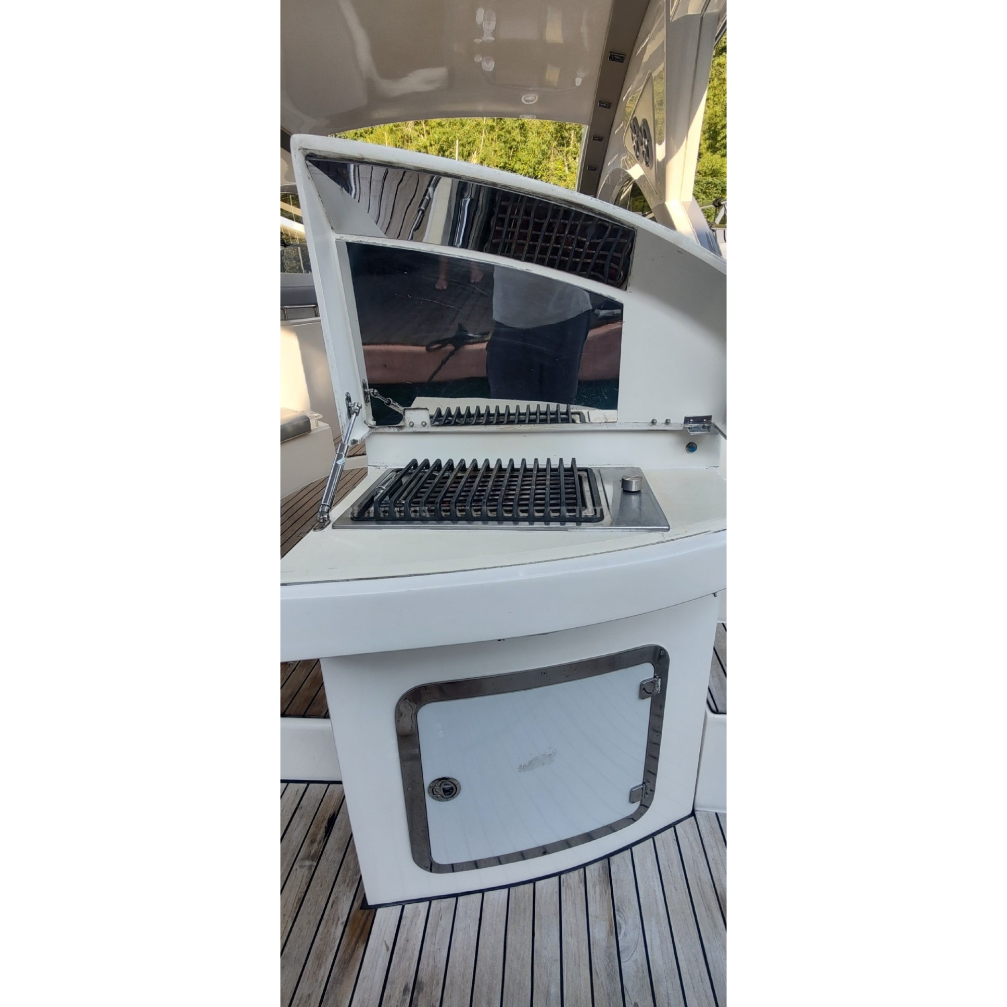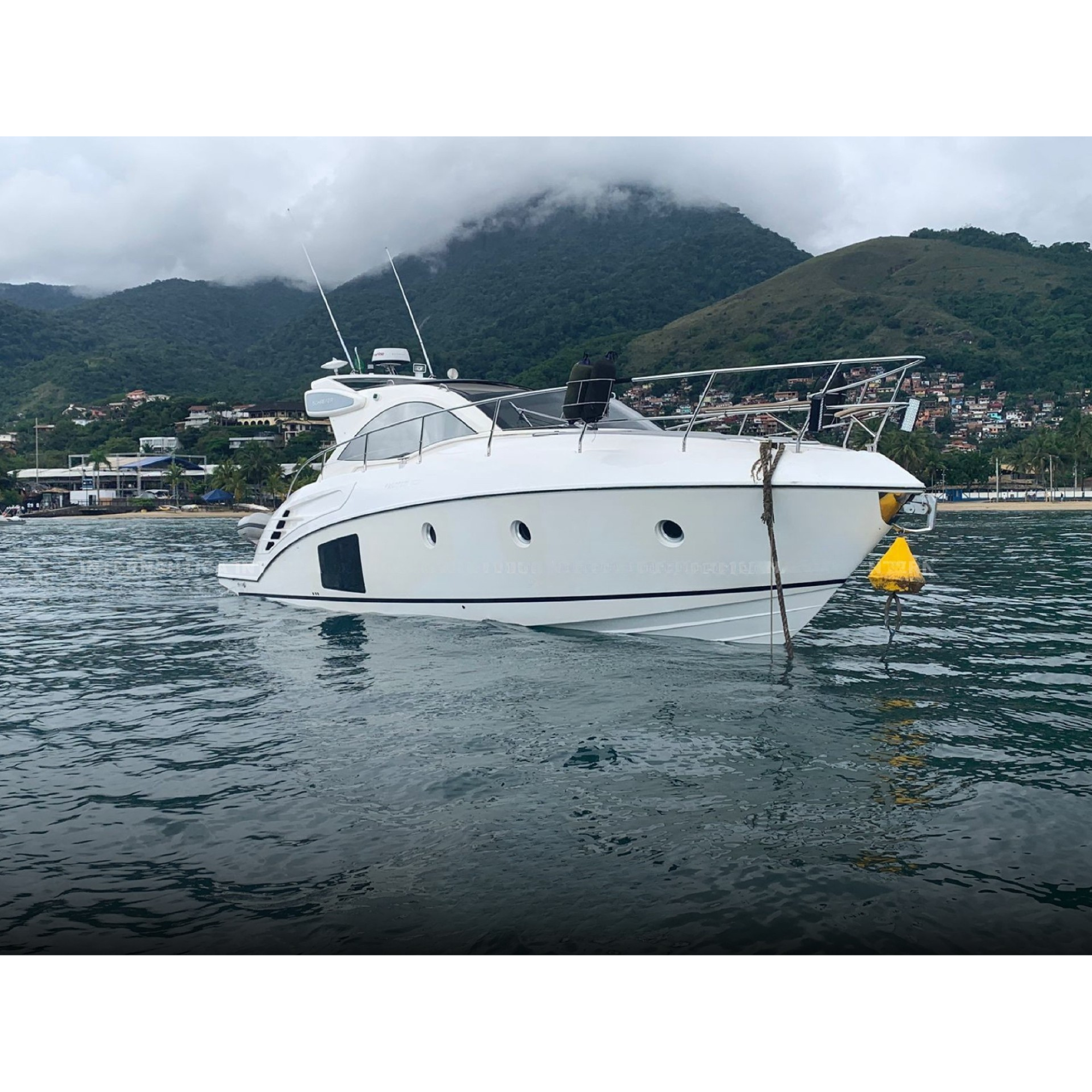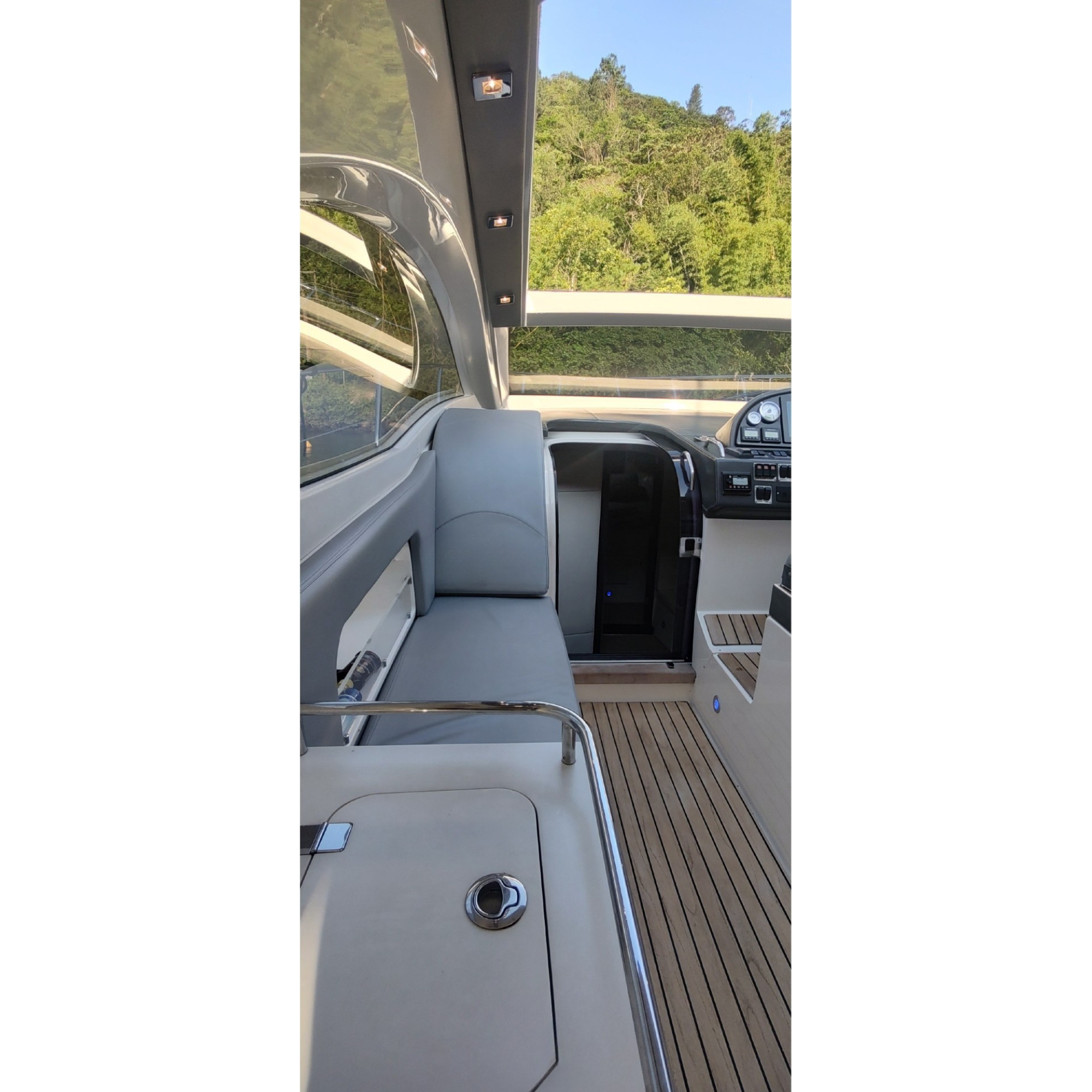 Antena TV, Ar Condicionado, Boiler, Bússola, Carregador de Baterias, Carreta, Churrasqueira, Chuveiro de Popa, Cristaleira, Comando Eletrônico, Farol Robotizado, Fechamento Completo, Flaps Hidráulicos, Fogão Elétrico, Geladeira, Geleira, Gerador, GPS, Guincho Elétrico, Joystick, Rádio VHF, Solário de Proa, Som, Sonda, Teka Praça de Popa, Televisão, Toldo, Tomada de Cais, WC Elétrico, Quartos: 2, Banheiros: 2