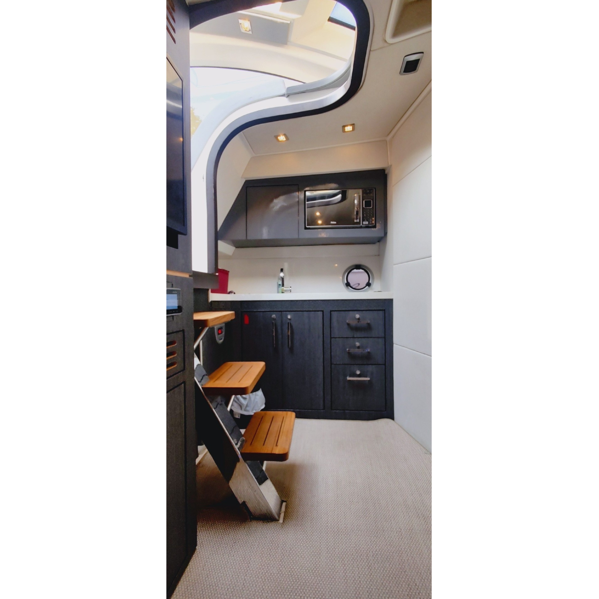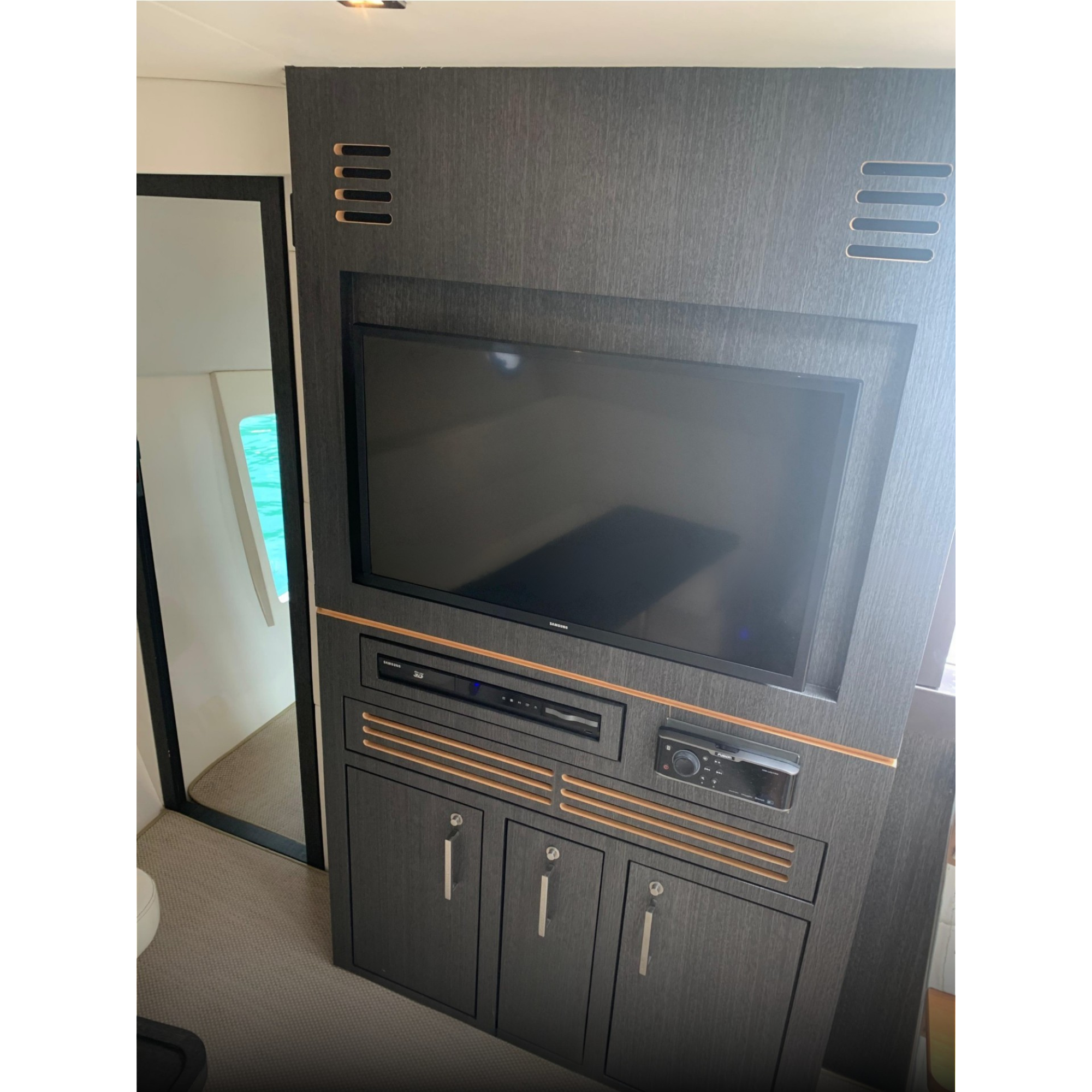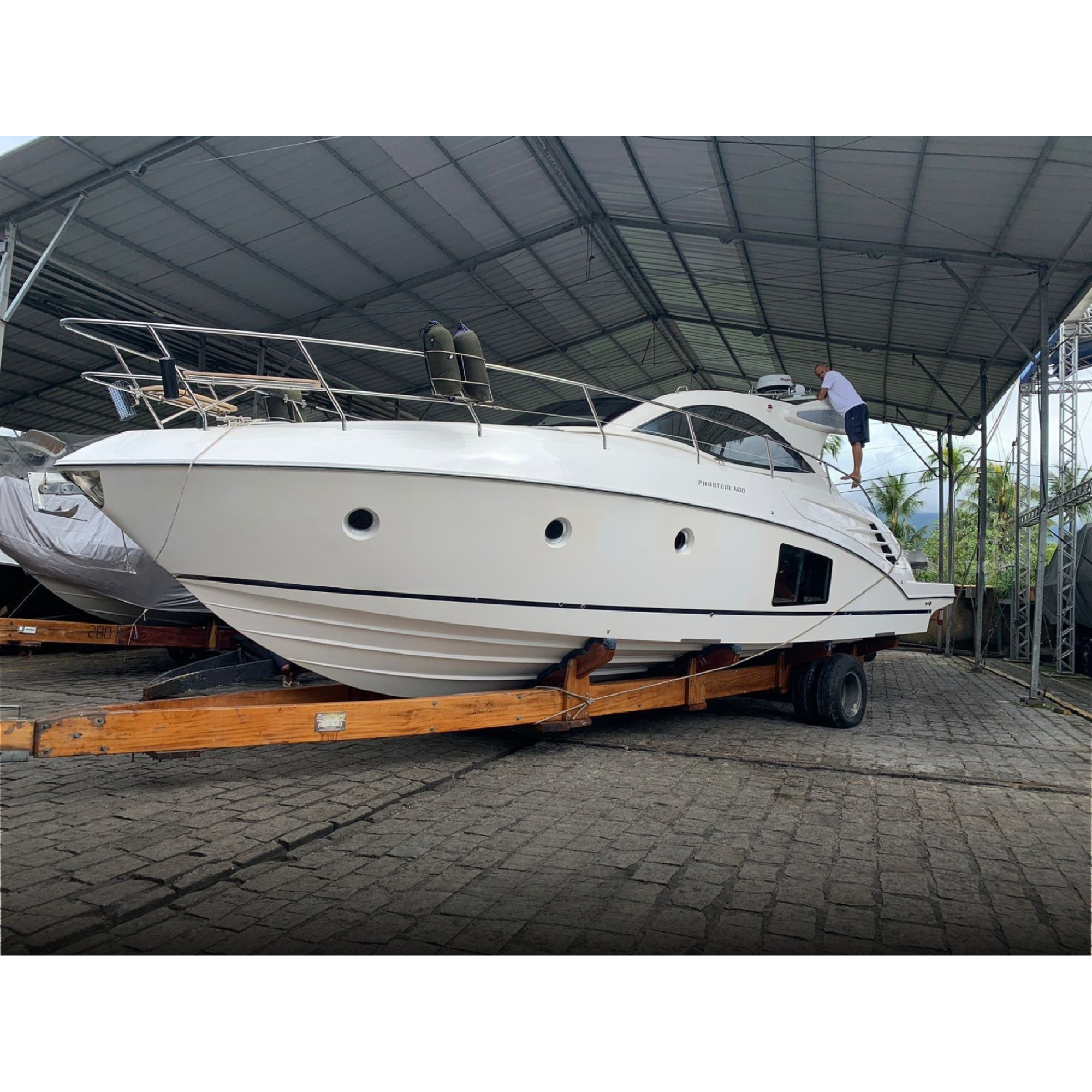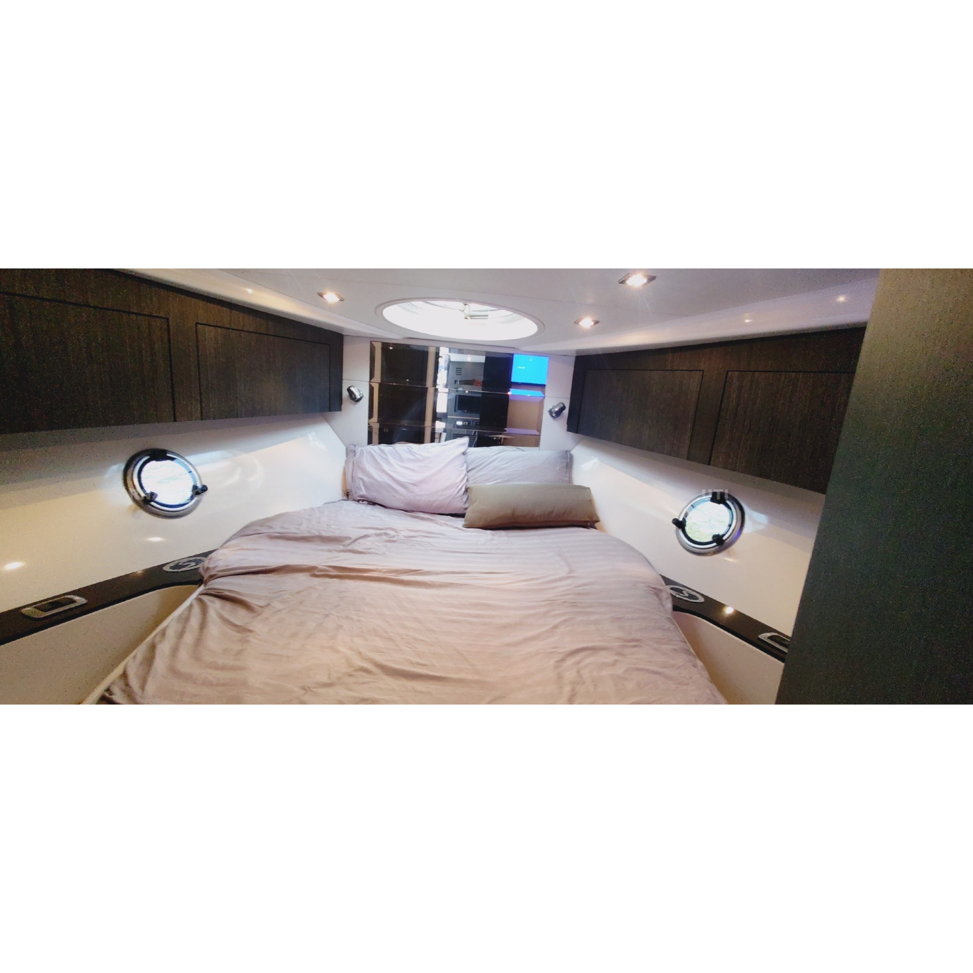 Antena TV, Ar Condicionado, Boiler, Bússola, Carregador de Baterias, Carreta, Churrasqueira, Chuveiro de Popa, Cristaleira, Comando Eletrônico, Farol Robotizado, Fechamento Completo, Flaps Hidráulicos, Fogão Elétrico, Geladeira, Geleira, Gerador, GPS, Guincho Elétrico, Joystick, Rádio VHF, Solário de Proa, Som, Sonda, Teka Praça de Popa, Televisão, Toldo, Tomada de Cais, WC Elétrico, Quartos: 2, Banheiros: 2
