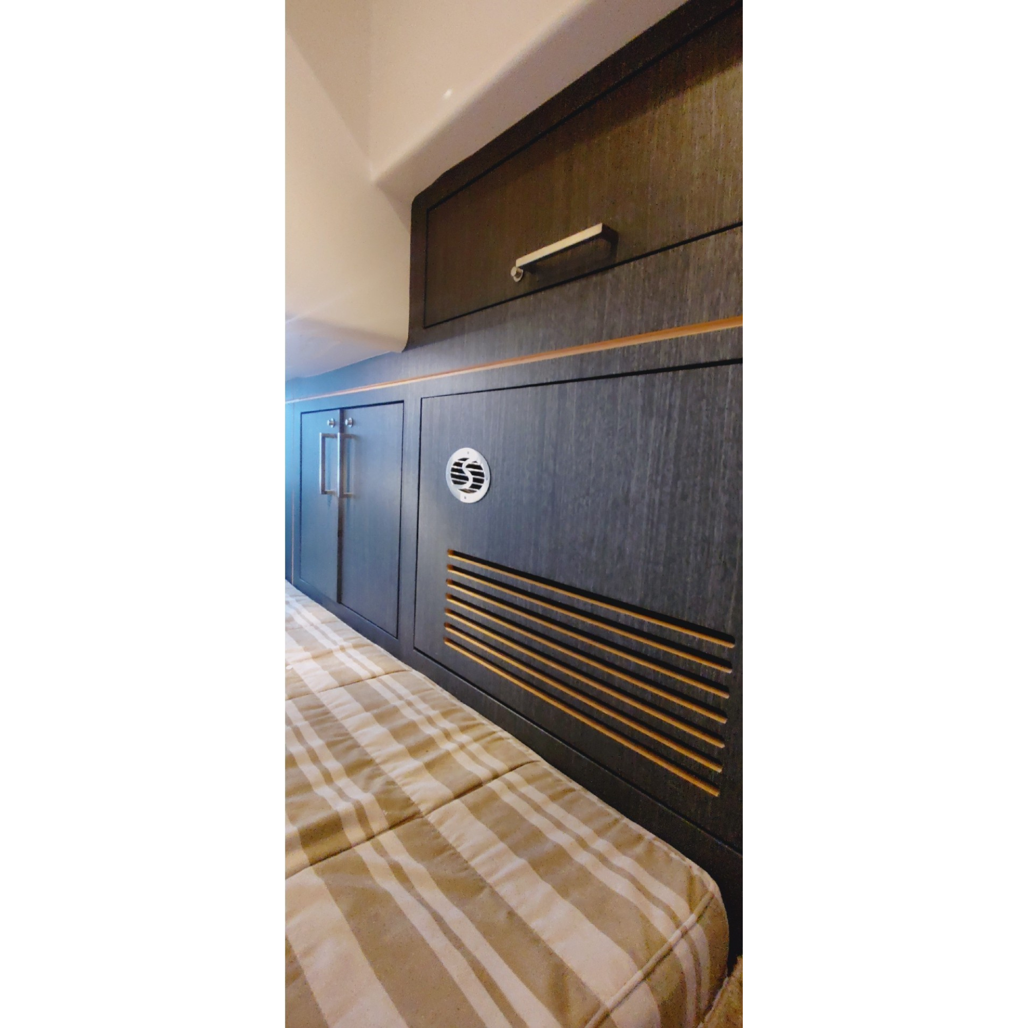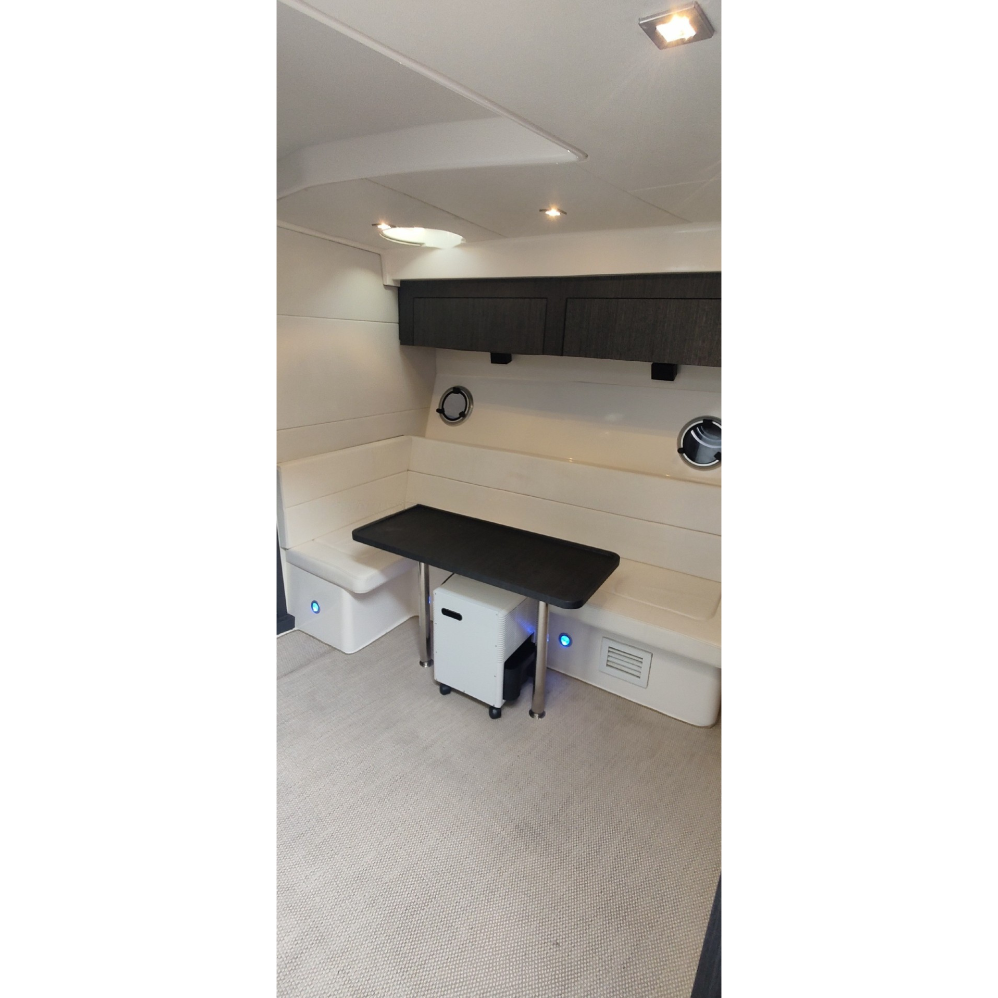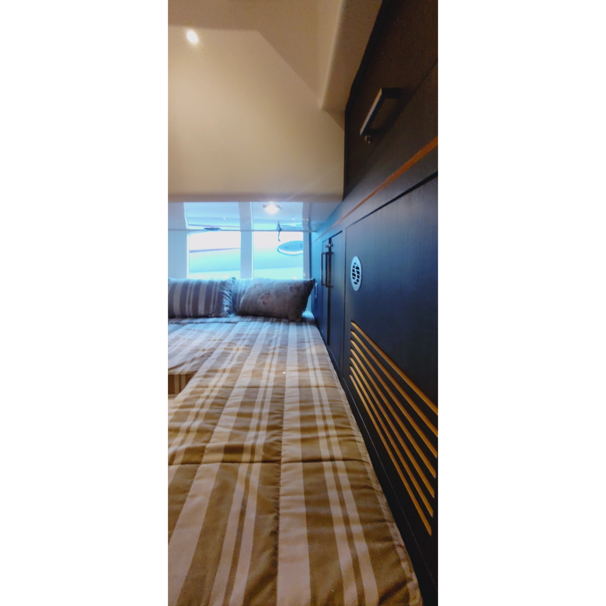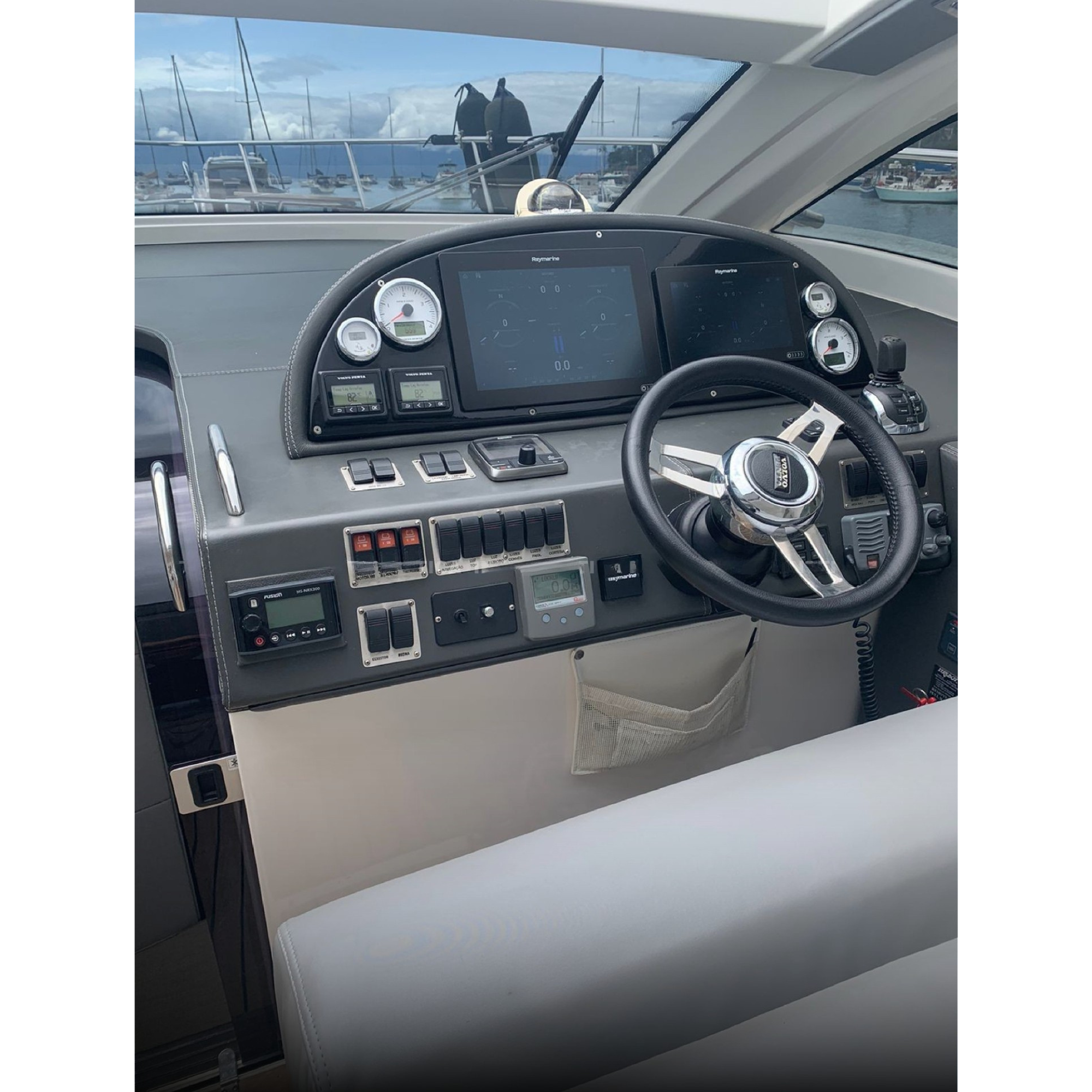 Antena TV, Ar Condicionado, Boiler, Bússola, Carregador de Baterias, Carreta, Churrasqueira, Chuveiro de Popa, Cristaleira, Comando Eletrônico, Farol Robotizado, Fechamento Completo, Flaps Hidráulicos, Fogão Elétrico, Geladeira, Geleira, Gerador, GPS, Guincho Elétrico, Joystick, Rádio VHF, Solário de Proa, Som, Sonda, Teka Praça de Popa, Televisão, Toldo, Tomada de Cais, WC Elétrico, Quartos: 2, Banheiros: 2