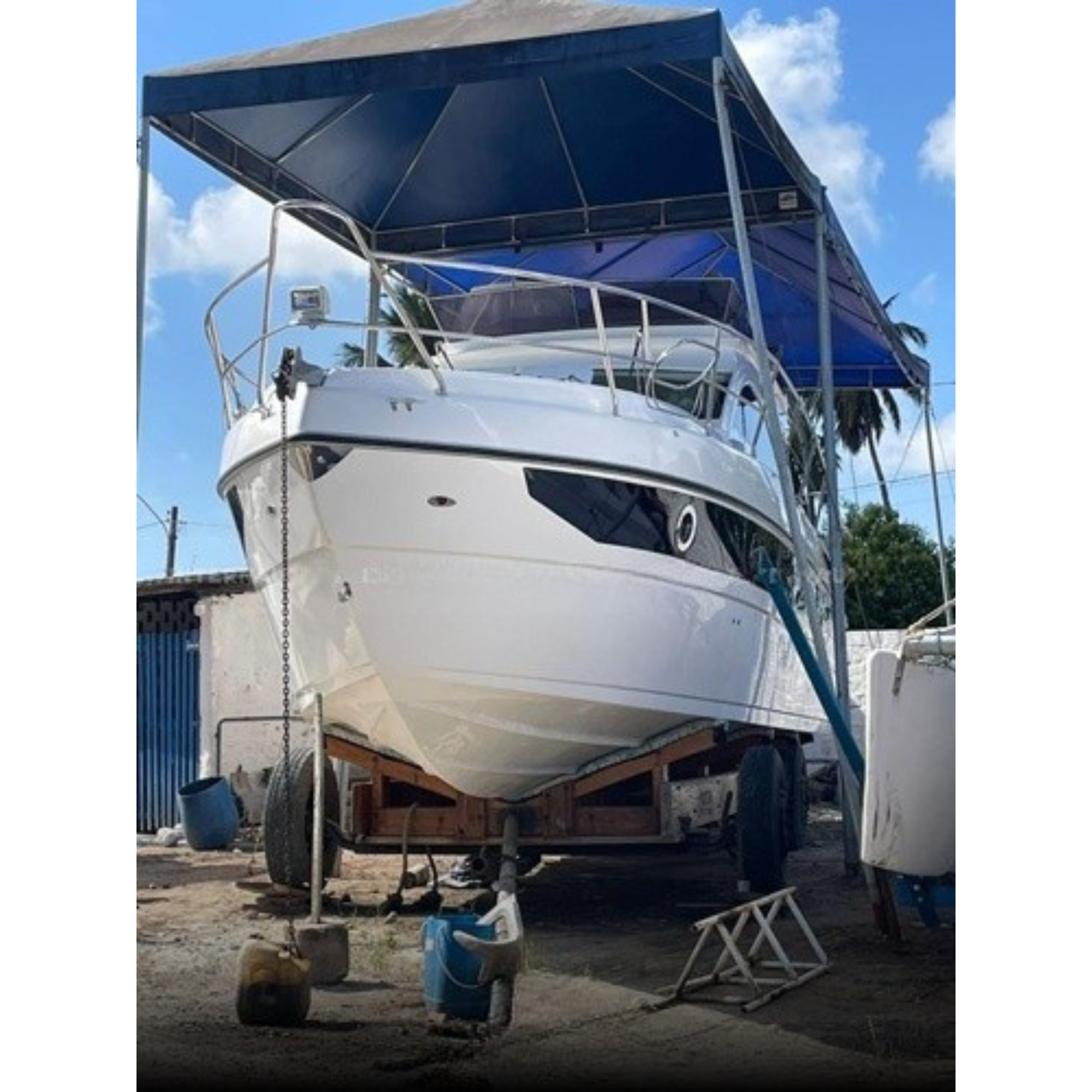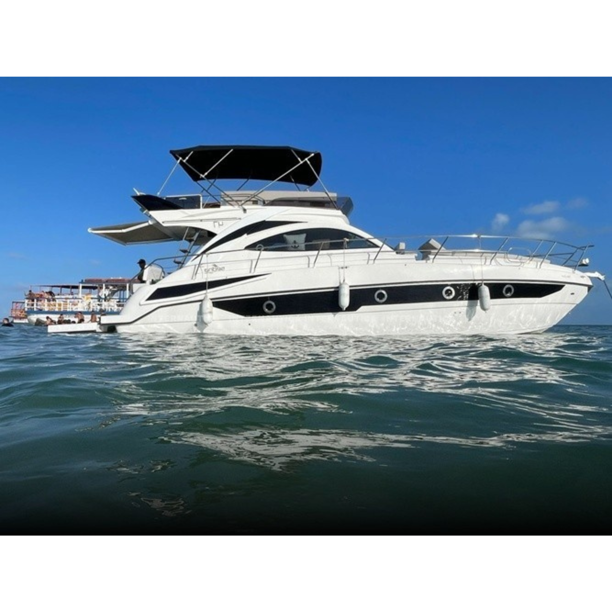 Antena TV, Ar Condicionado, Boiler, Bússola, Capota, Carregador de Baterias, Carreta, Churrasqueira, Chuveiro de Popa, Cristaleira, Comando Eletrônico, Direção Hidráulica, DVD, Farol Robotizado, Flaps Hidráulicos, Fogão Elétrico, Freezer, Geladeira, Geleira, Gerador KVA: ONAN 9, GPS, GPS Fly, Guincho Elétrico, Iluminação Subaquática, Inversor, Joystick, Plataforma Submergível, Microondas, Rádio VHF, Rádio VHF Fly, Solário de Proa, Som, Sonda, Strobolight, Teka Patamar de Popa, Teka Praça de Popa, Televisão, Toldo, Tomada de Cais, WC Elétrico