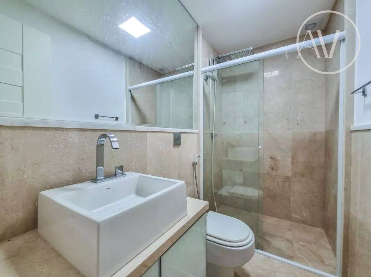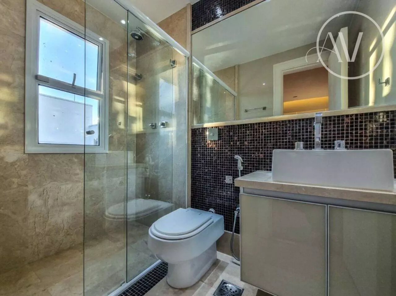 A suíte master é um destaque à parte, com um closet espaçoso e banheiros que aproveitam a iluminação natural para criar uma atmosfera relaxante e arejada.