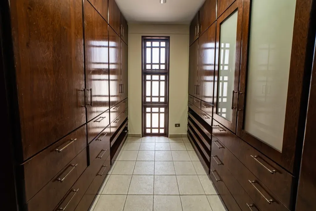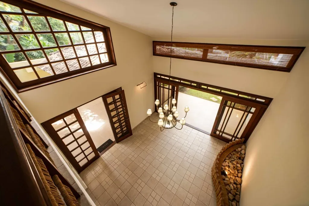 A personalidade: em alguns ambientes, ela é alegre, divertida, leve. Em outros, ela é mais introspectiva, reservada e marcante. É fácil perceber nas cores, na madeira, nos lustres e pé-direito alto.