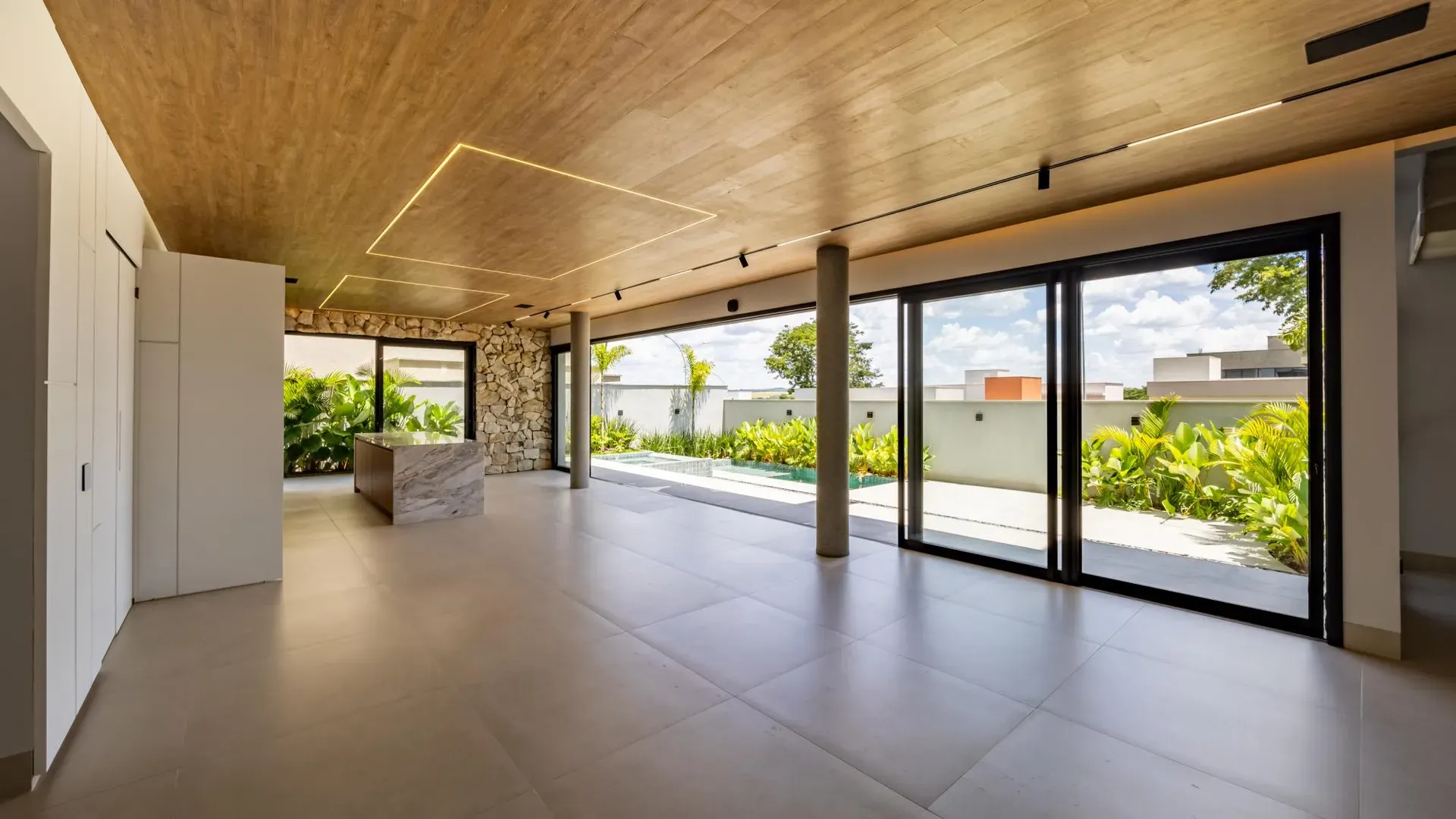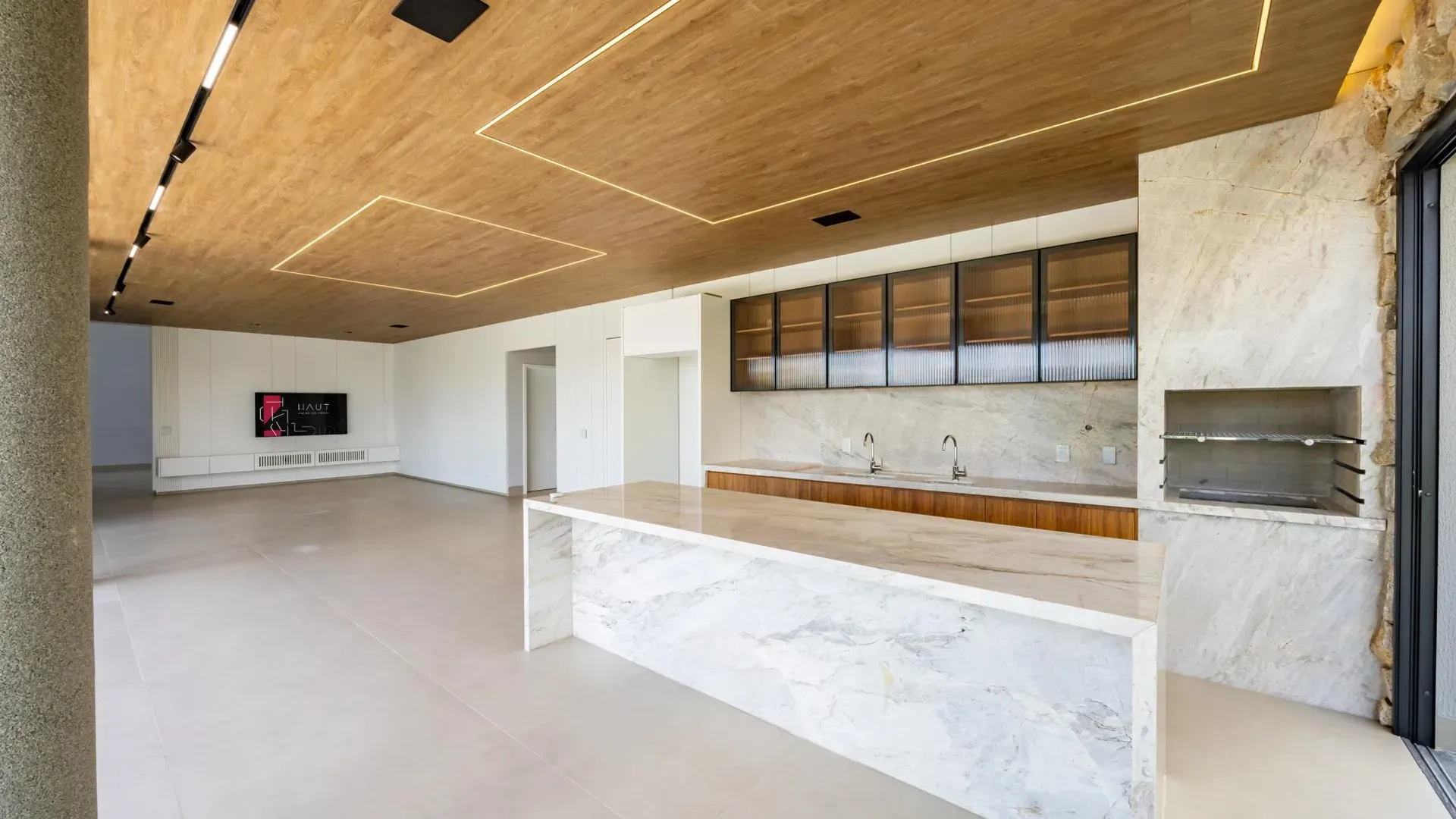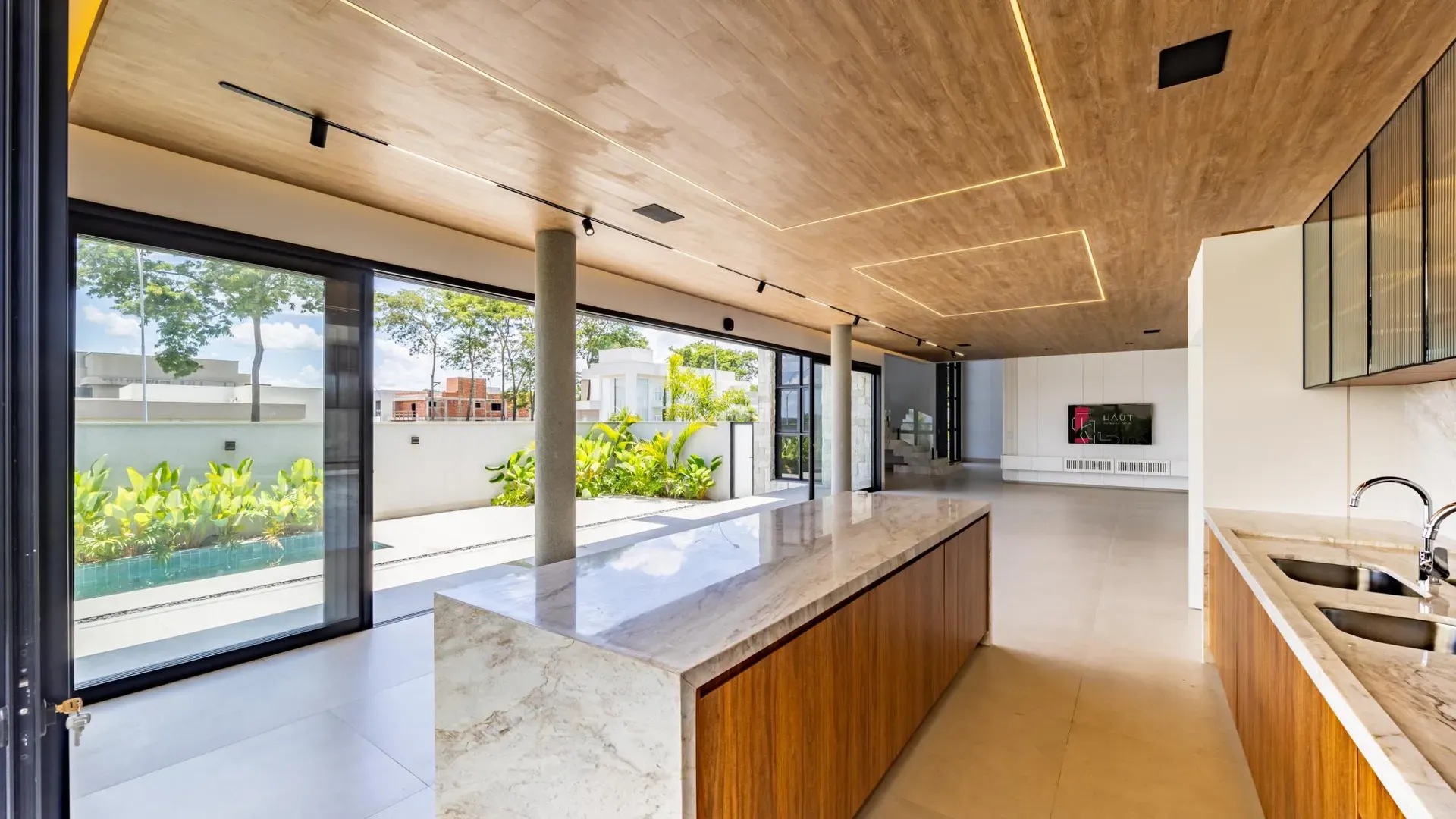 Os espaços internos impressionam pelo pé-direito alto e acabamentos sofisticados, onde cada detalhe foi pensado para proporcionar uma experiência única de conforto e elegância. A combinação entre o moderno e o orgânico tornam o espaço interessante esteticamente e muito agradável para a convivência diária.