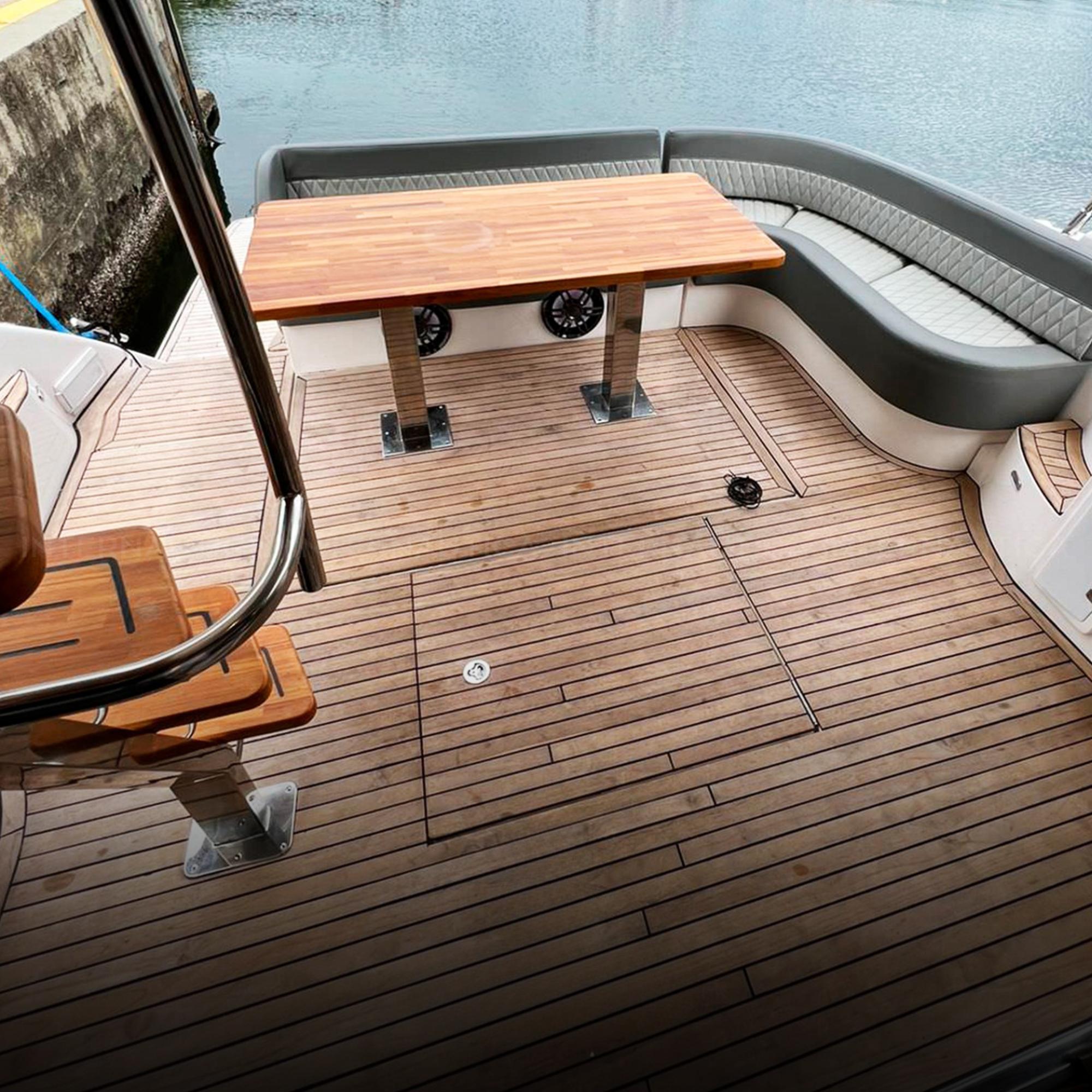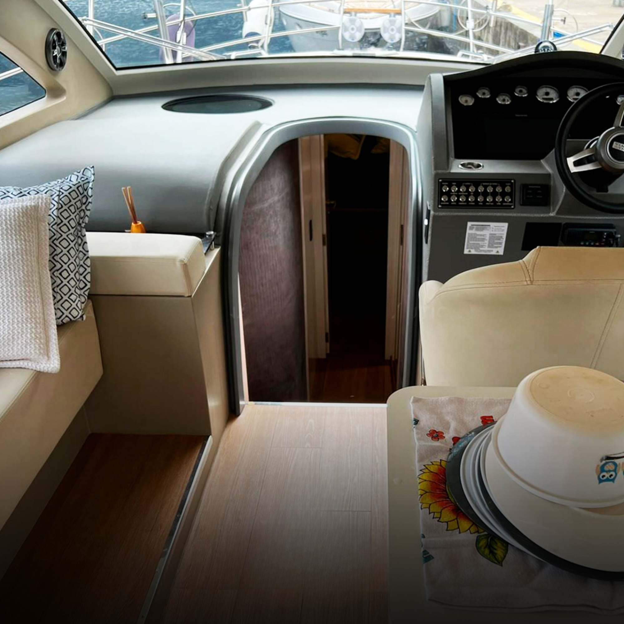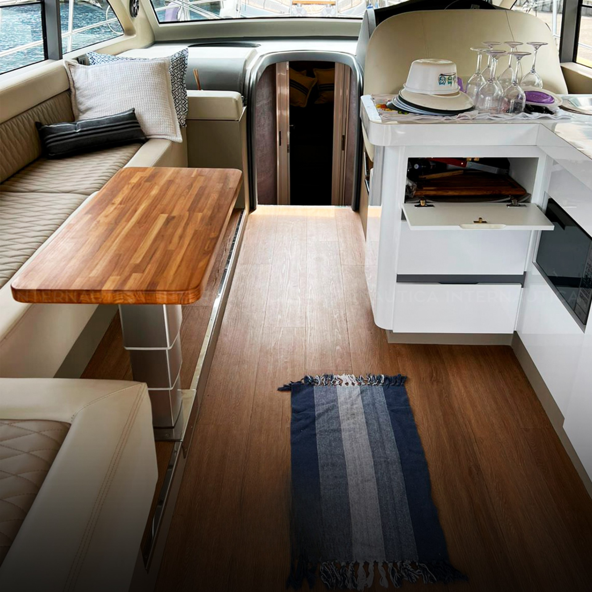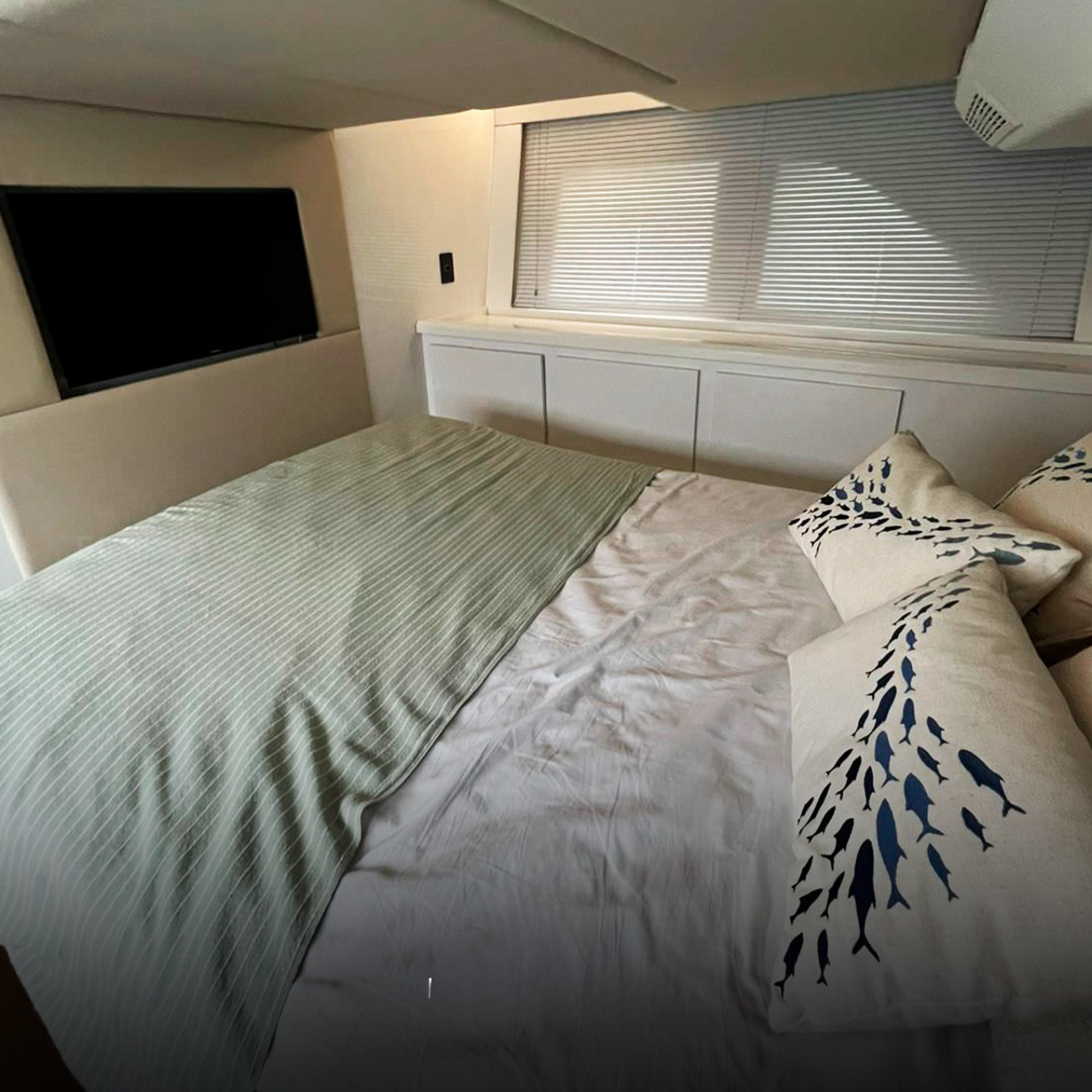 Antena TV, Ar Condicionado, Boiler, Bússola, Capota, Carregador de Baterias, Carreta, Churrasqueira, Chuveiro de Popa, Cristaleira, Comando Eletrônico, Direção Hidráulica, DVD, Fechamento Completo, Flaps Hidráulicos, Fogão Elétrico, Geladeira, Gerador, GPS, GPS Fly, Guincho Elétrico, Inversor, Joystick, Plataforma Submergível, Microondas, Rádio VHF, Rádio VHF Fly, Solário de Proa, Som, Sonda, Strobolight, Teka Patamar de Popa, Teka Praça de Popa, Teka Cockpit, Televisão, Toldo, Tomada de Cais, WC Elétrico